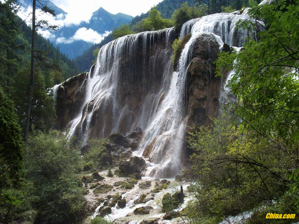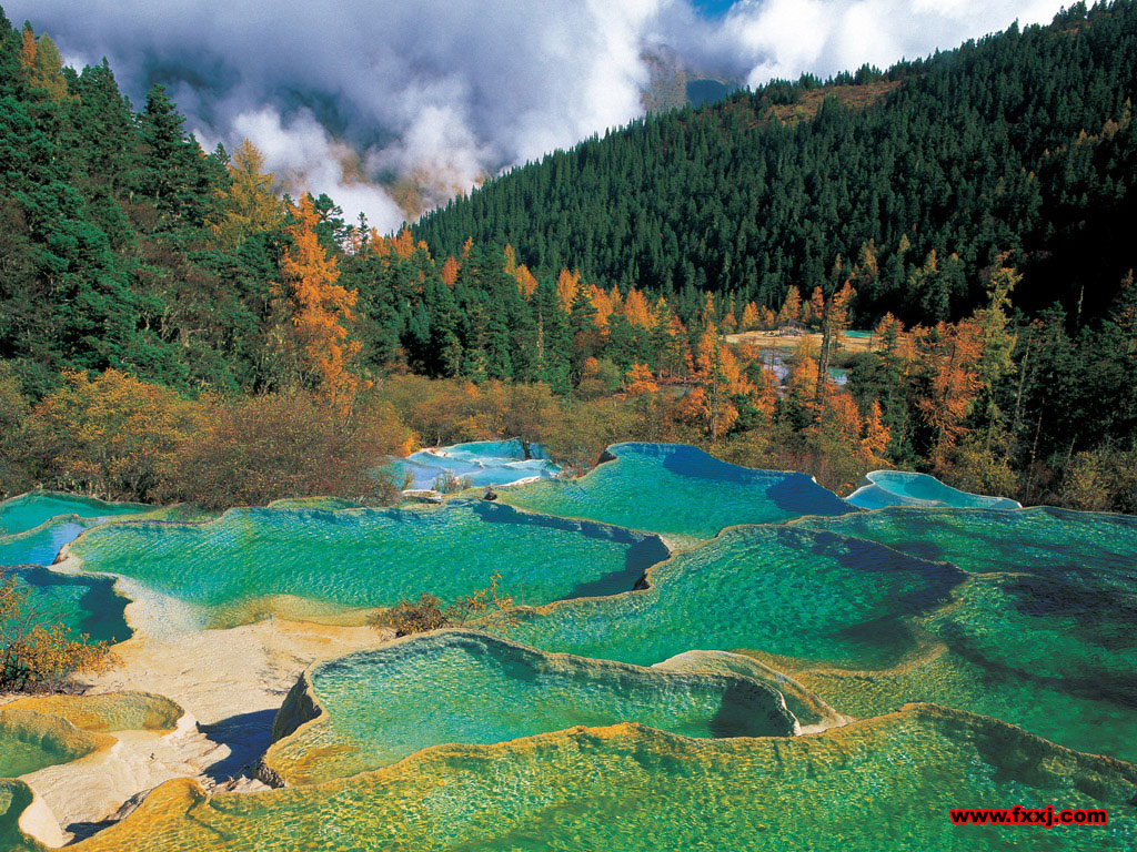 Tout d'abord la vallée de Jiuzhaigou ("le ravin aux 9 villages" car on y trouve tout autour de ces lacs et chutes d'eau 9 villages tibétains), dans la province du Sichuan (vers le centre de la Chine), classée au patrimoine mondiale de l'UNESCO. Il s'agirait d'une des forêts abritant une des plus grandes biodiversités au monde.