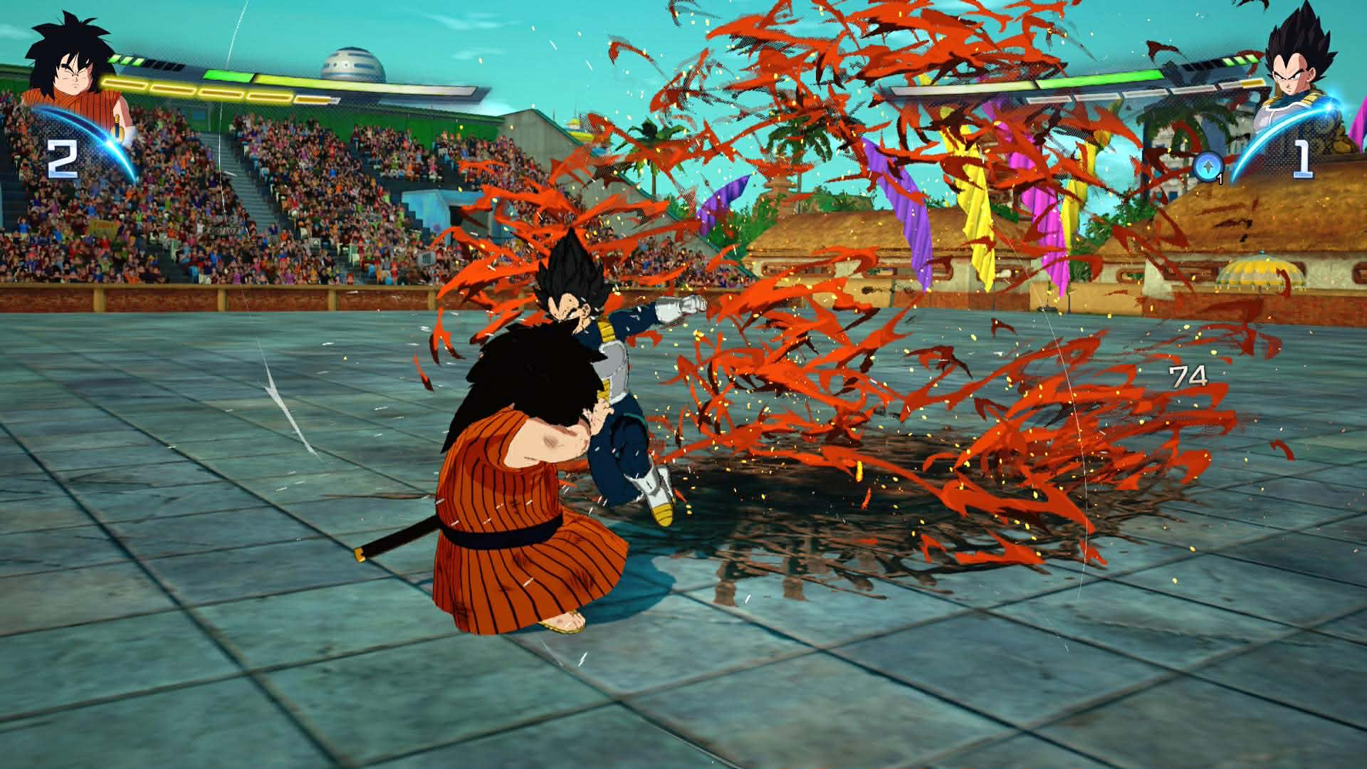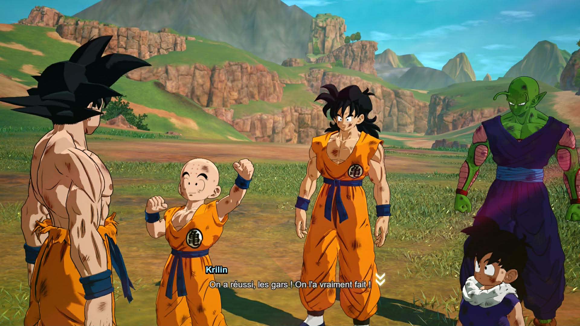 Et que dire de la beauté du soft en général… C'est simple, on en prend plein les mirettes à chaque instant, à chaque combat, et ce pour notre plus grand plaisir. Le jeu est beau et fluide, on se croirait par moment plongé dans l'animé tant on est facilement happé par ce qu'il se passe à l'écran. La réalisation des personnages est excellente, avec en prime la possibilité de voir leurs vêtement se dégradés à force de prendre ou de se mettre des coups, là encore à l'instar de l'animé ! Les fans apprécieront ce sens du détail. Les effets pyrotechniques sont également présents en masse et rendent particulièrement bien à l'écran. La plupart des zones de combat emblématiques répondent également présents, comme la fameuse salle de l'esprit et du temps, la planète Namek ou encore le terrain si particulier dédié aux tournois des arts martiaux. La bande-son est plutôt de bonne facture, bien que l'on peut légitimement pester contre le fait que les musiques originales soient disponibles en dlc payant, tandis que les doublages en japonais, avec les véritables voix des seiyus de l'anime, sont excellents et contribuent largement à l'immersion dans l'univers proposé.