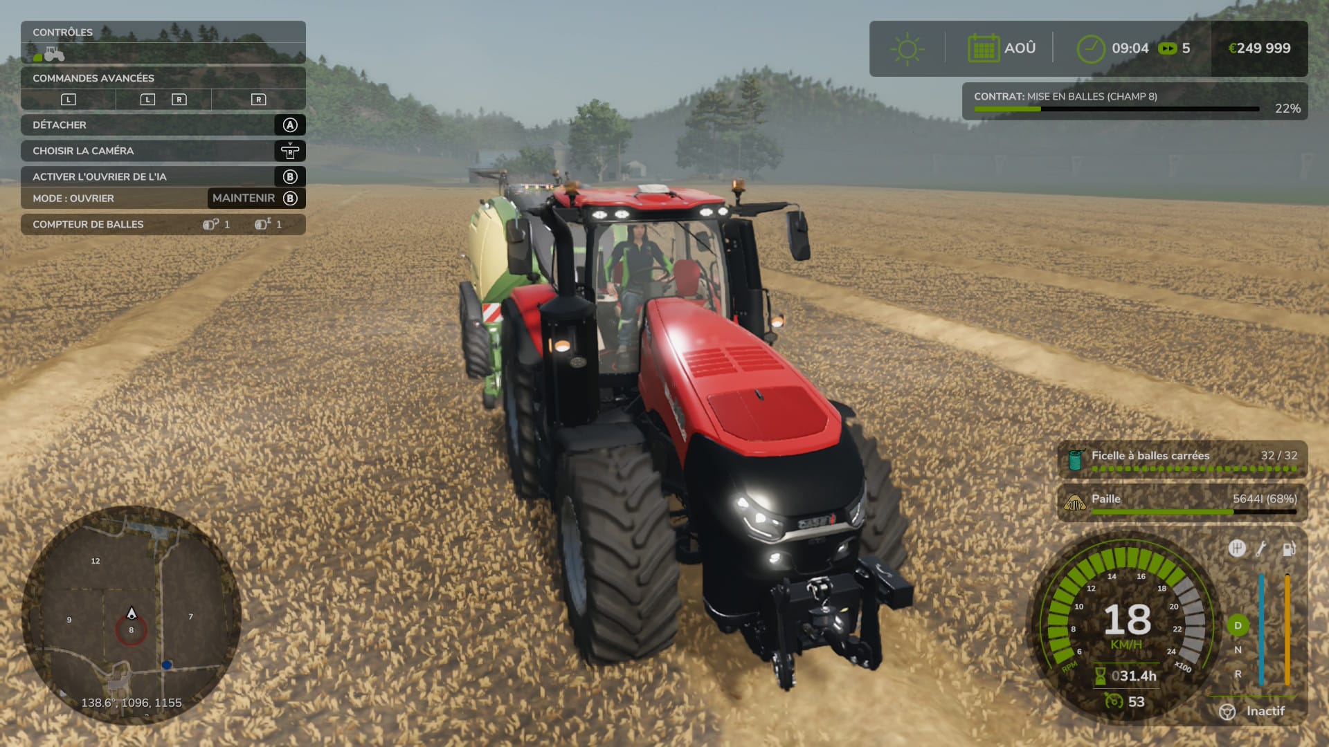 Par ailleurs, outre votre propre choix d'exploitation, vous remarquez rapidement que vous ne disposez pas forcément des fonds pour posséder certaines machines (très chères). Ainsi, dans un premier temps, accepter des contrats pour aller travailler dans les champs voisins s'avère nécessaire afin d'en glaner de l’argent. Par ailleurs, cela vous permet surtout d’apprendre peu à peu à travailler des activités que vous ne connaissez pas comme la mise en balle (qu’il faudra aussi faire après avoir récolté vos céréales ou l’herbe), la découpe d’arbres morts et / ou le transport de ceux-ci, les vignes, le coton, la destruction de pierres, l’épandage, la fertilisation, bref, c’est très divers et si vous vous prenez au jeu, l’ennui n’existe pas. C’est d’ailleurs aussi une belle occasion de découvrir la technologie embarquée dans des machines étonnamment modernes.