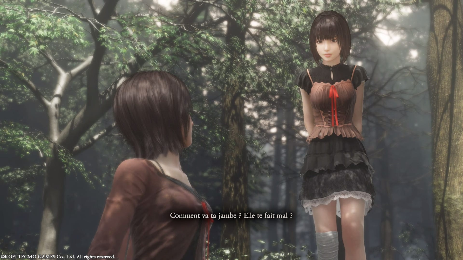 En explorant les lieux, Mio et Mayu apprennent progressivement que ce village mystérieux, est lié à une ancienne tradition rituelle particulièrement sombre. Autrefois, les habitants pratiquaient un sacrifice appelé le rituel des jumelles, destiné à maintenir le monde des vivants séparé de celui des esprits. Cependant, ce rituel aurait échoué, provoquant une catastrophe surnaturelle qui aurait condamné le village et transformé ses habitants en esprits tourmentés. Les sœurs commencent alors à percevoir des phénomènes étranges : des apparitions fantomatiques, des murmures et des visions du passé qui semblent rejouer les événements tragiques ayant marqué le village. Au cœur de cette situation inquiétante, Mio doit rester forte pour protéger Mayu, dont le comportement devient de plus en plus étrange, comme si le village exerçait sur elle une influence particulière. L’introduction installe ainsi une atmosphère de mystère et de tension psychologique, tout en annonçant les thèmes principaux du jeu : le lien entre les jumelles, la mémoire des lieux et le poids des rituels anciens.