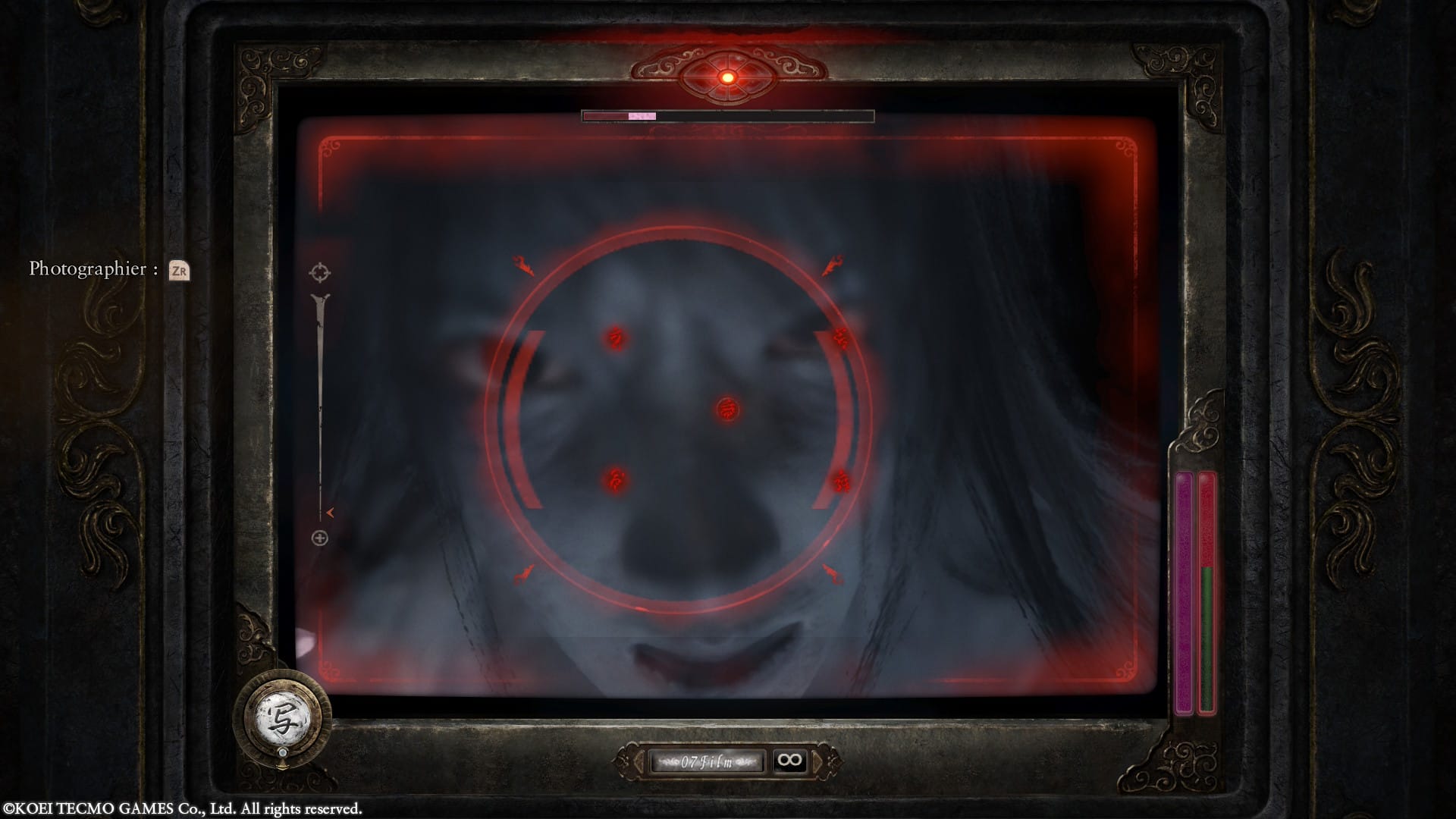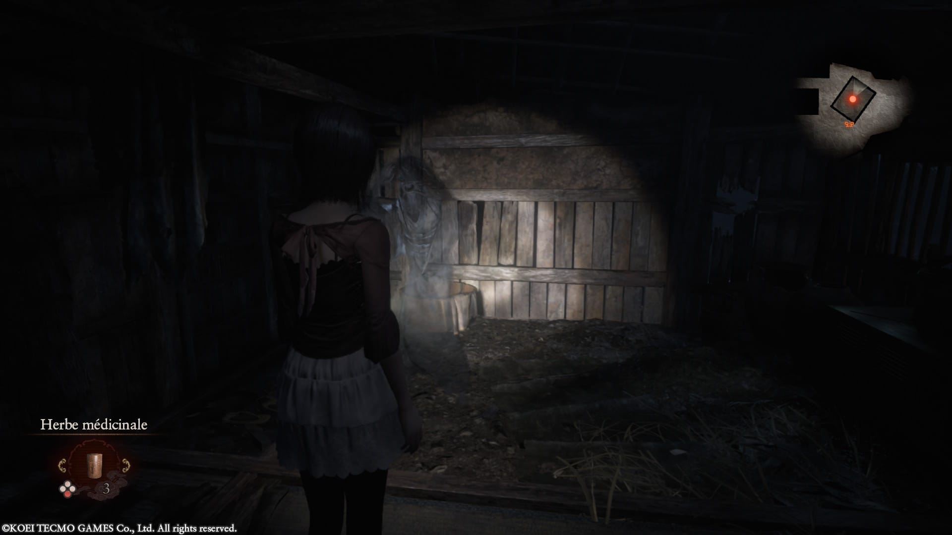 La particularité de la série Fatal Frame tient sur le fait que vous vous “battez” avec un appareil photo. En effet, la Camera Obscura permet de renvoyer les esprits d’où ils viennent. Pour être plus clair, lorsque vous êtes en présence d’un esprit vengeur, vous n’avez souvent d’autre choix que de le vaincre et pour cela, il faut prendre des clichés au bon moment. Le cadrage est important mais aussi la netteté de la photo pour faire le plus de dégâts possible. Le titre ne vous fera pas de cadeau et si vous n’appliquez pas certaines règles dans vos affrontements, vous éprouverez certainement de la difficulté. Par exemple, il vaut mieux prendre un cliché au moment où un esprit vous attaque (l’écran clignote) afin de faire réellement des dégâts et enchaîner le cas échéant avec un Fatal Frame (cliché fatal) très puissant. Sans optimiser vos dégâts, ce seront vos “munitions” qui viendront rapidement à manquer, entendez par là, les différents type de pellicules que vous pouvez utiliser qui ont chacune leurs attributs : puissance, temps de recharge.