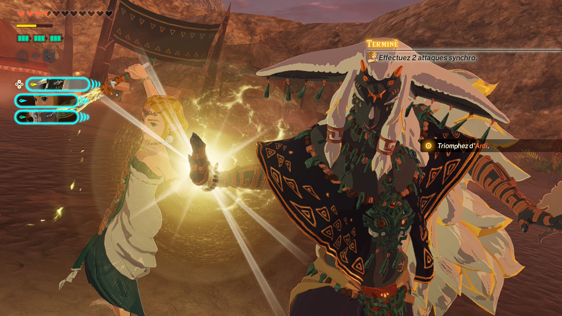 Ce qui intéresse souvent, pour un Warriors à licence, c’est son roster. Au risque de surprendre, nous allons garder une certaine discrétion sur le roster complet. En tout cas, le roster déjà dévoilé est en soi sans surprise, puisqu’il met en scène tous ceux qui ont fait Tears Of The Kingdom, à savoir Zelda, Mineru, Rauru et les Sages. Chacun apporte vraiment une différence de gameplay, comme indiqué précédemment. Nous soulignons une nette amélioration du Piaf, moins contraint de se battre dans les airs et offrant ainsi une expérience mieux maîtrisée et plus agréable. Pour les autres personnages, si nous avons vraiment apprécié leur découverte côté gameplay, un petit regret se glisse malgré tout.