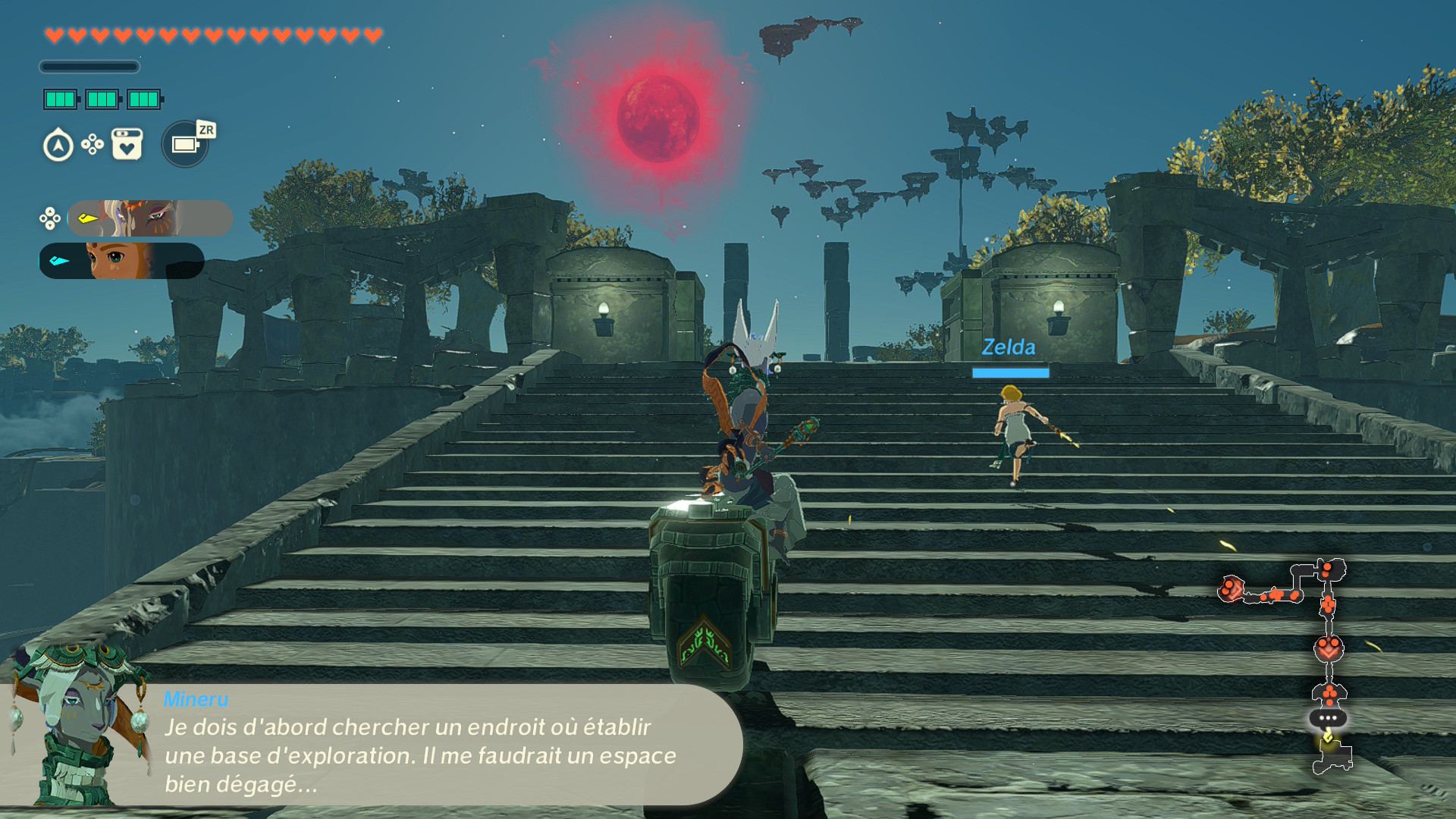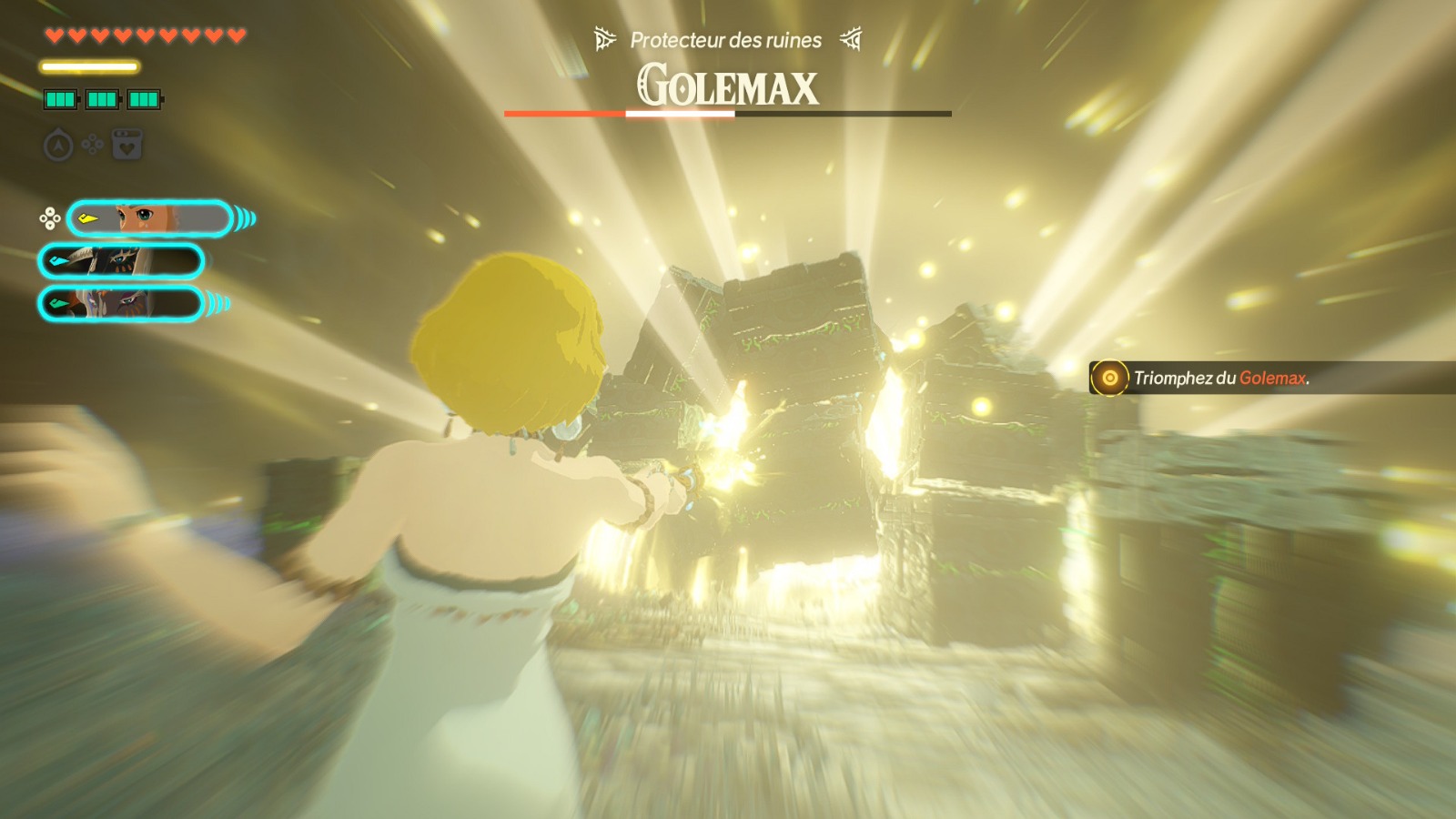 Le point capital, et que beaucoup de monde attend, c’est l’histoire en elle-même. Soyons clairs : vous allez vivre avant tout ce que vous avez vécu au travers des souvenirs dans Tears Of The Kingdom, mais en plus développé. C’est-à-dire de l’arrivée de Zelda au combat final. Nous ne développerons pas plus. Malgré tout, cette séquence permet de découvrir des personnages très en retrait dans TOTK (comme les Sages), mais aussi de mieux appréhender les personnalités de Rauru et Mineru, puisque nous en voyons plus sur eux. Nous garderons une discrétion absolue sur le golem, mais nous avons aussi apprécié son traitement. Certains moments ont été épiques, et très honnêtement, marquants pour le fan de la saga que je suis. Il faut tout de même garder à l’esprit, malgré toutes les spéculations que l’on a vues sur le potentiel background du jeu, qu’il s’axe vraiment sur le nom qu’il possède : Les Chroniques du Sceau.