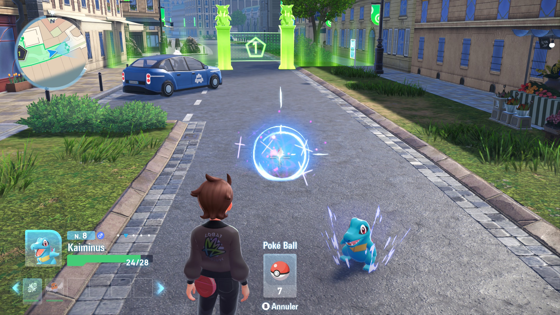 En journée, vous allez ainsi partir à la découverte des points importants afin de débloquer des points de déplacement rapide, mais pas seulement ! Après avoir obtenu votre starter parmi Germignon, Gruikui ou Kaiminus, vous devrez commencer par vous créer une équipe solide afin de vous lancer dans le Royal Z-A (nous y reviendrons plus tard). Mais pour attraper des Pokémon à Illumis, il n’y a pas 36 solutions, il faut partir dans les Zones Sauvages, des zones délimitées par des hologrammes verts, où les Pokémon sauvages peuvent agir librement. Si certains se montreront dociles, voire curieux de votre présence, d’autres se montreront beaucoup plus hostiles, et n’hésiteront pas à vous attaquer jusqu’à l’évanouissement.