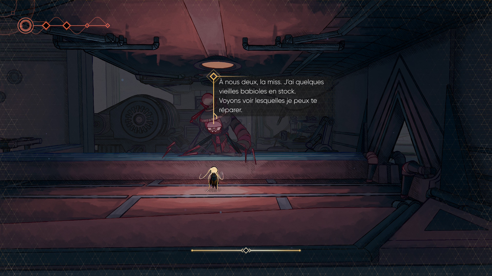 Alors est-ce que ce jeu est un petit chef d’œuvre ? Il est très réussi, oui, mais il garde un rythme très lent, et si vous n’êtes pas réceptif aux fragments d’histoire proposés ou à ce monde de robots, il devient difficile de rester intéressé. Le manque de points de sauvegarde est également plutôt frustrant si on ne veut pas activer les options d’aide, mais cela sera un choix personnel. Par contre, les combats, eux-restent durs, et manquent plutôt de rythme et d’impact. Les ennemis ne réagissent que peu, ou pas à vos coups et vous manquer de vitesse et d’options, surtout en début de jeu, sans compter que votre barre de vie est riquiqui ! Tout cela s’additionne pour donner un MIO une première impression qui peut être délétère. Pourtant, impossible de douter du talent et travail qui composent ce titre de qualité.