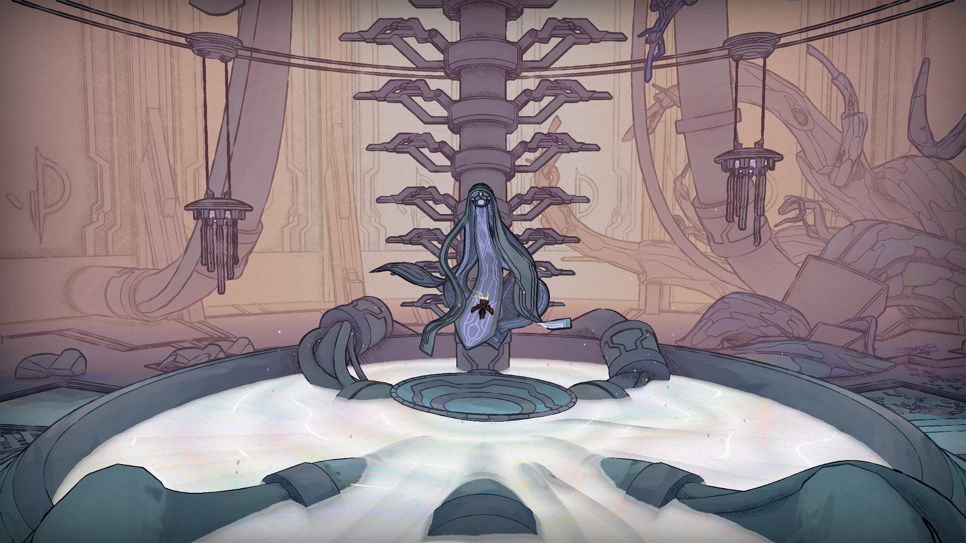 Difficile de raconter l’histoire de MIO: Memories in Orbit, surtout sans spoiler. Vous être un robot dans une station presque abandonnée, abîmée et gelée en partie. Quelque chose s’est mal passé et les différentes parties de la colonie robotique se sont déconnectées, les robots sont devenus fous et rien ne va plus. C’est dans ce contexte que vous vous éveillez. Qui êtes-vous ? Pourquoi êtes-vous là ? Et pourquoi maintenant ? Chercher toutes ces réponses fait partie du fun. Ce qui est certain, c’est que vous allez devoir chercher les pièces du puzzle par vous-même et les assembler à l’aveugle pour tout savoir.