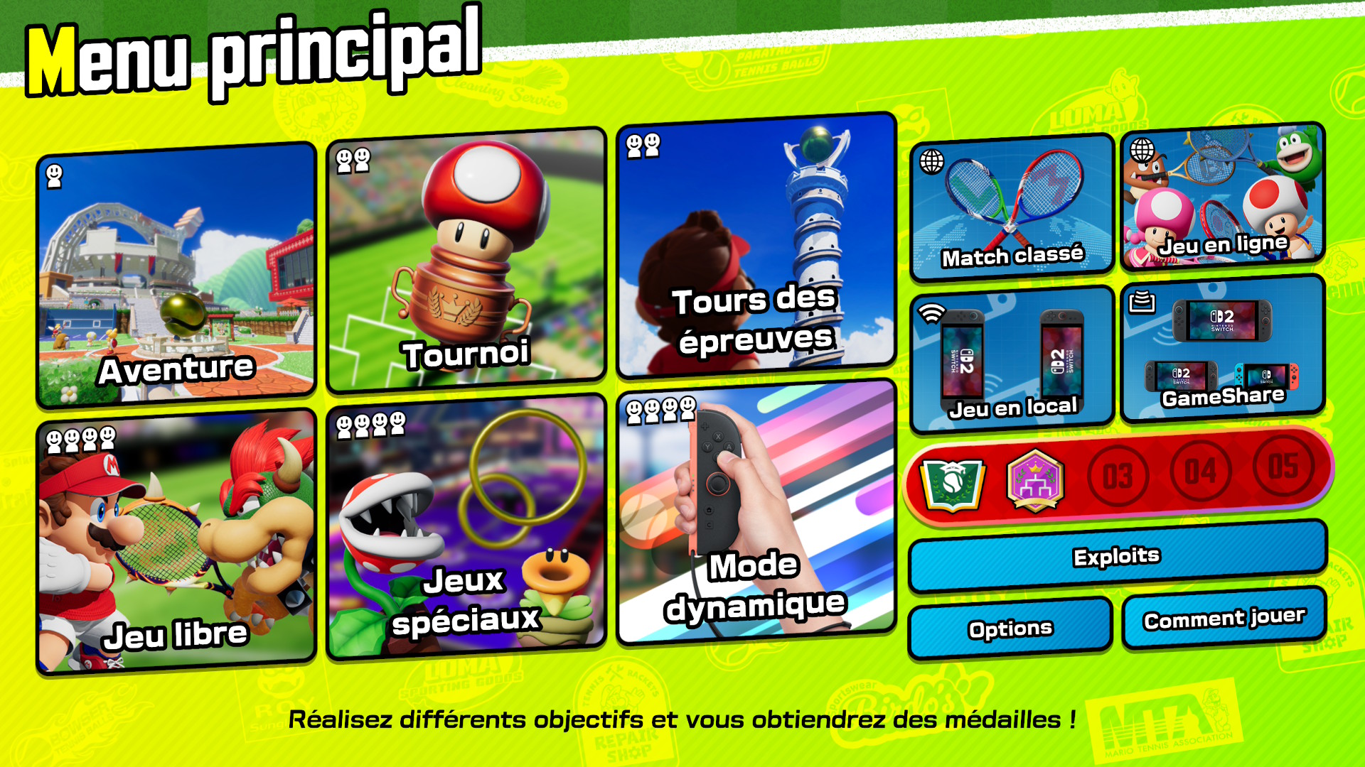 Nous terminerons tout de même avec le jeu en local. En plus de jouer jusqu’à quatre sur une seule console, les joueurs pourront profiter du mode jeu en local pour jouer chacun avec leur propre Nintendo Switch 2 et leur propre exemplaire de Mario Tennis Fever. Mais la bonne nouvelle, c’est que le jeu est compatible GameShare. Vous pourrez ainsi faire profiter de votre exemplaire du jeu à trois autres consoles maximum, Nintendo Switch 2 et Nintendo Switch 1. Un moyen parfait de jouer avec des membres de la famille ou des amis qui n’ont pas encore fait l’acquisition du jeu, par exemple.