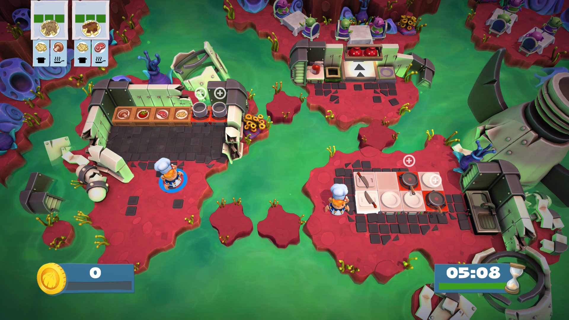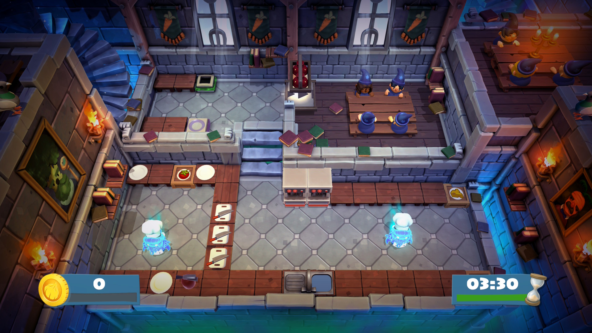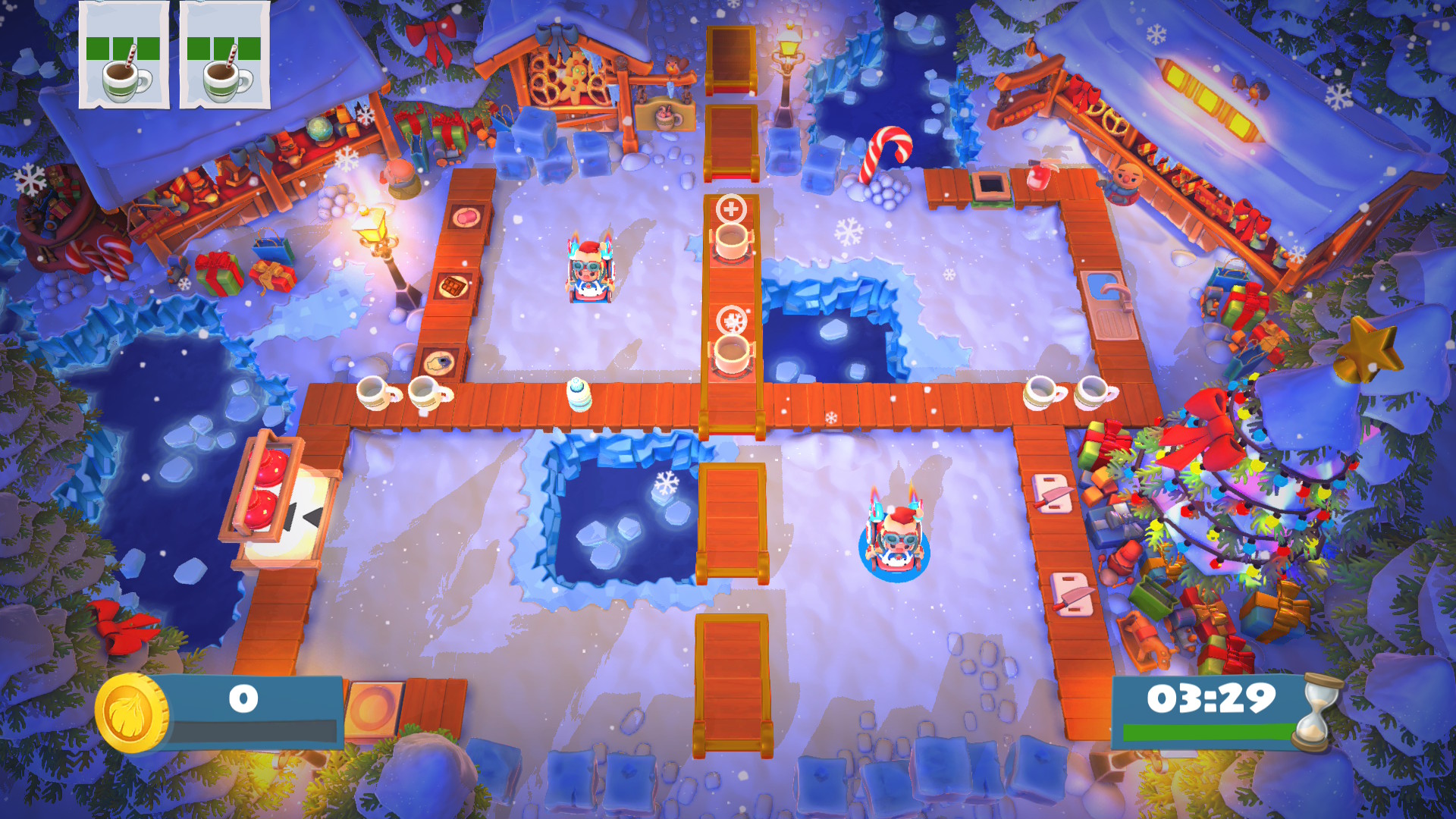 On joue mieux parce qu’on voit mieux. Les cuisines les plus animées gagnent en netteté sans rien perdre de leur intensité. L’anticipation devient plus simple, le rythme plus fluide, et la sensation d’énergie plus immédiate. Sur une grande télévision, l’amélioration saute encore plus aux yeux. Le multijoueur en ligne fonctionne correctement, mais l’âme du jeu reste sur le canapé. L’agitation partagée, les réactions instinctives, les hurlements de panique et surtout les prises de becs, tout cela perd de sa force à distance. Le mode en ligne reste une alternative utile, notamment pour maintenir un lien ludique en cas d’empêchement ou de contexte particulier (ne reviens pas Covid-19). Cette meilleure lisibilité renforce tout ce qui fait le charme coopératif d’Overcooked 2.