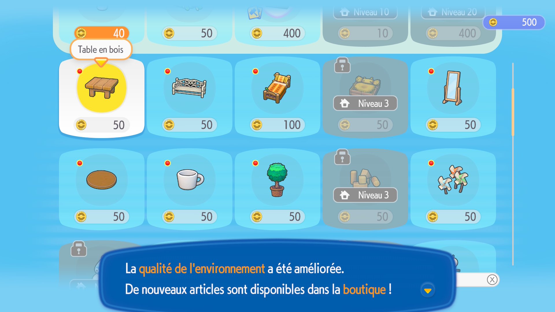 Chacune des zones que vous débloquerez proposera un niveau d’habitat. Chaque niveau franchi vous permettra d’obtenir davantage de quêtes et des objets, la plupart du temps en rapport avec la zone en question. Pour augmenter votre niveau d’habitat, il faudra avancer dans le scénario, mais aussi nettoyer les zones, reconstruire routes et chemins et attirer un maximum de Pokémon en construisant de nouveaux habitats. Une fois les Pokémon arrivés, il y a également leur niveau de confort à prendre en considération. Certains souhaiteront de la décoration, d’autres des zones avec une température ou un éclairage spécifique, etc. Un confort optimal = un meilleur niveau d’habitat.