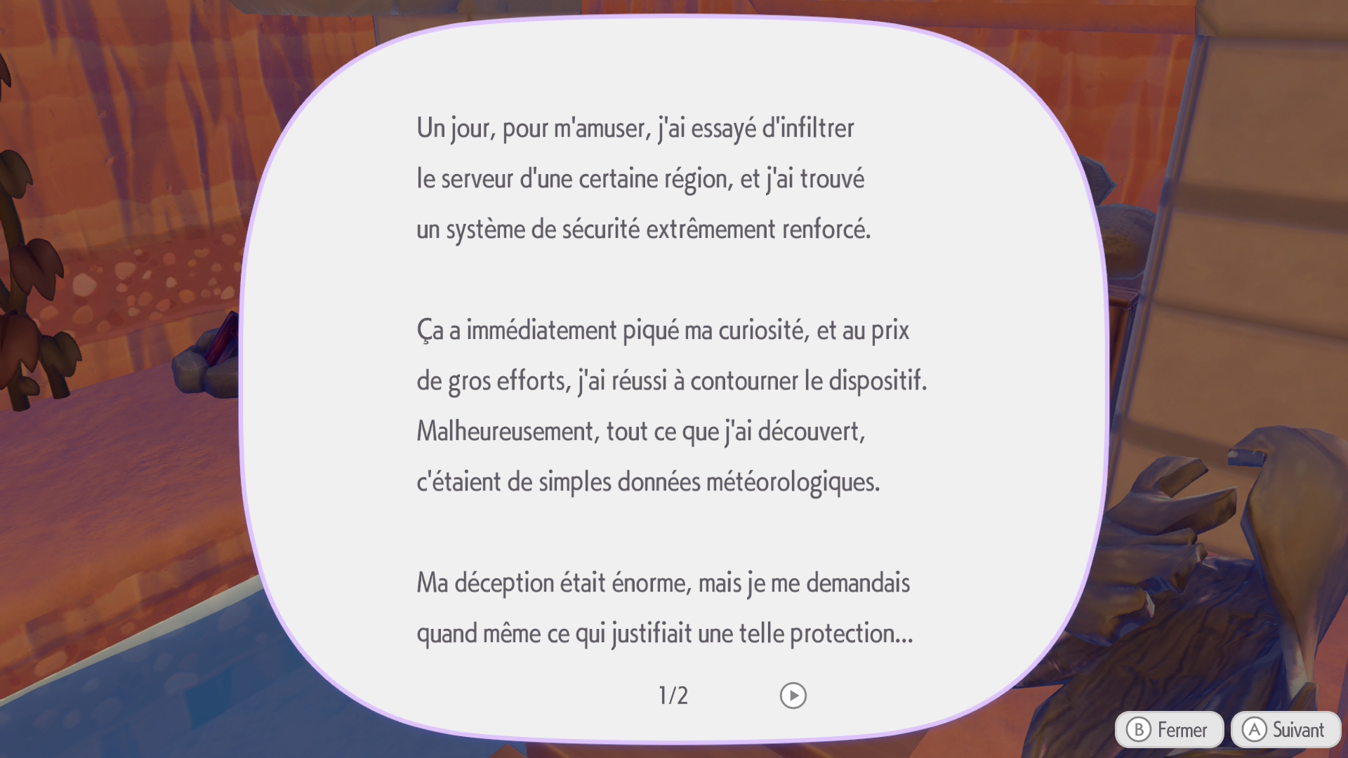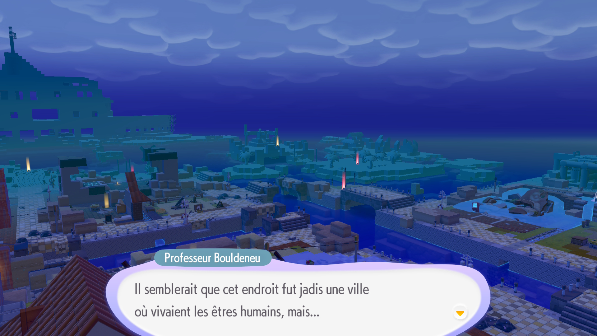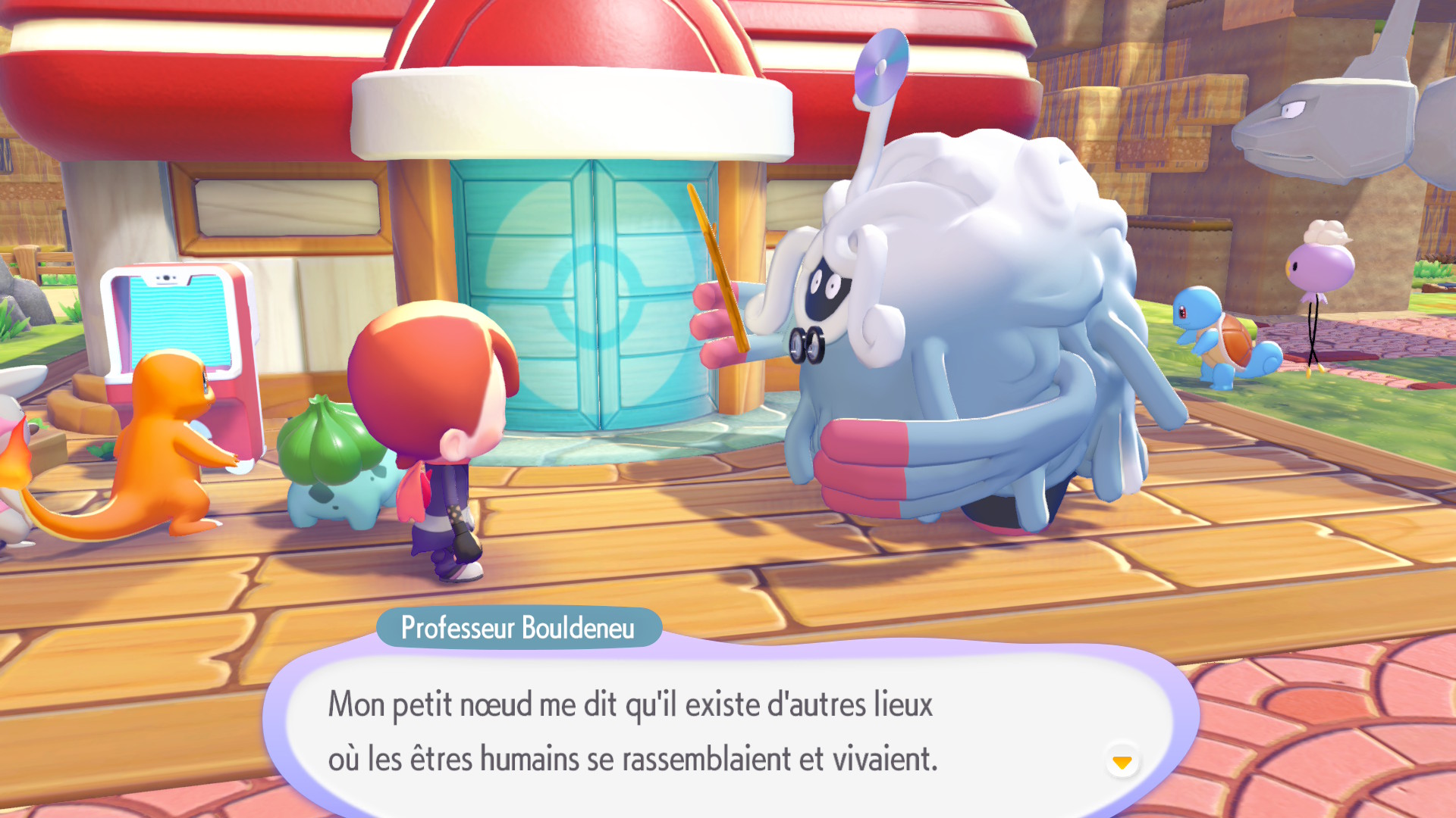 Un autre point abordé plus tôt est le fameux « où sont les humains ? ». Là aussi, nous avons une part d’explication dans le scénario principal. Mais en fouillant les vieilles bâtisses, pas forcément visibles si l’on se contente du chemin principal, on en apprend davantage sur les raisons de cette disparition, on commence à émettre des hypothèses, et cela renforce cette envie de poursuivre l’exploration de chaque zone de manière plus approfondie. Autre point encore non abordé : la présence de cases brillantes un peu partout dans les zones. En les détruisant, vous pouvez obtenir des objets intéressants comme des CD à donner à DJ Motisma ou à insérer dans un lecteur pour retrouver des musiques iconiques de la licence Pokémon. On peut aussi trouver des capsules temporelles à faire expertiser par le professeur Bouldeneu. Enfin, des zones brillantes apparaîtront aussi dans les herbes et dans l’eau, et il est important de ne pas les louper, car ce sera l’occasion de trouver de nouvelles recettes de fabrication à réaliser dans l’atelier. Il est également possible de récupérer des mimiques, ainsi que des coupes de cheveux et des tenues.