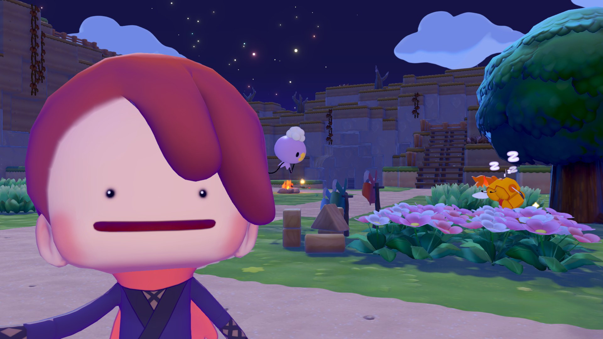 Nous parlions de scénario un petit peu plus tôt. Concernant l’aventure en elle-même, elle sera composée d’une multitude de quêtes : construire des habitats, des objets spécifiques, etc. À cela s’ajoutera une autre mécanique de requêtes importantes. Ce sont ces dernières qui vous permettront de mener à bien la première phase de reconstruction de chaque zone et d’évoluer vers la suivante. De nombreuses surprises vous attendent lors de ces requêtes, et ce sera également l’occasion de communiquer avec les nouvelles créatures de cet épisode comme Pikapâle et Ronflex Moussu. Au final, de par cette construction de jeu, on se rapproche davantage d’un titre qui reprend l’essence de Dragon Quest Builders 2. Et cela se ressent d’autant plus que c’est bien Koei Tecmo que l’on retrouve aux manettes de Pokémon Pokopia, après avoir déjà mis la main à la pâte avec Square Enix sur Dragon Quest Builders 2.
