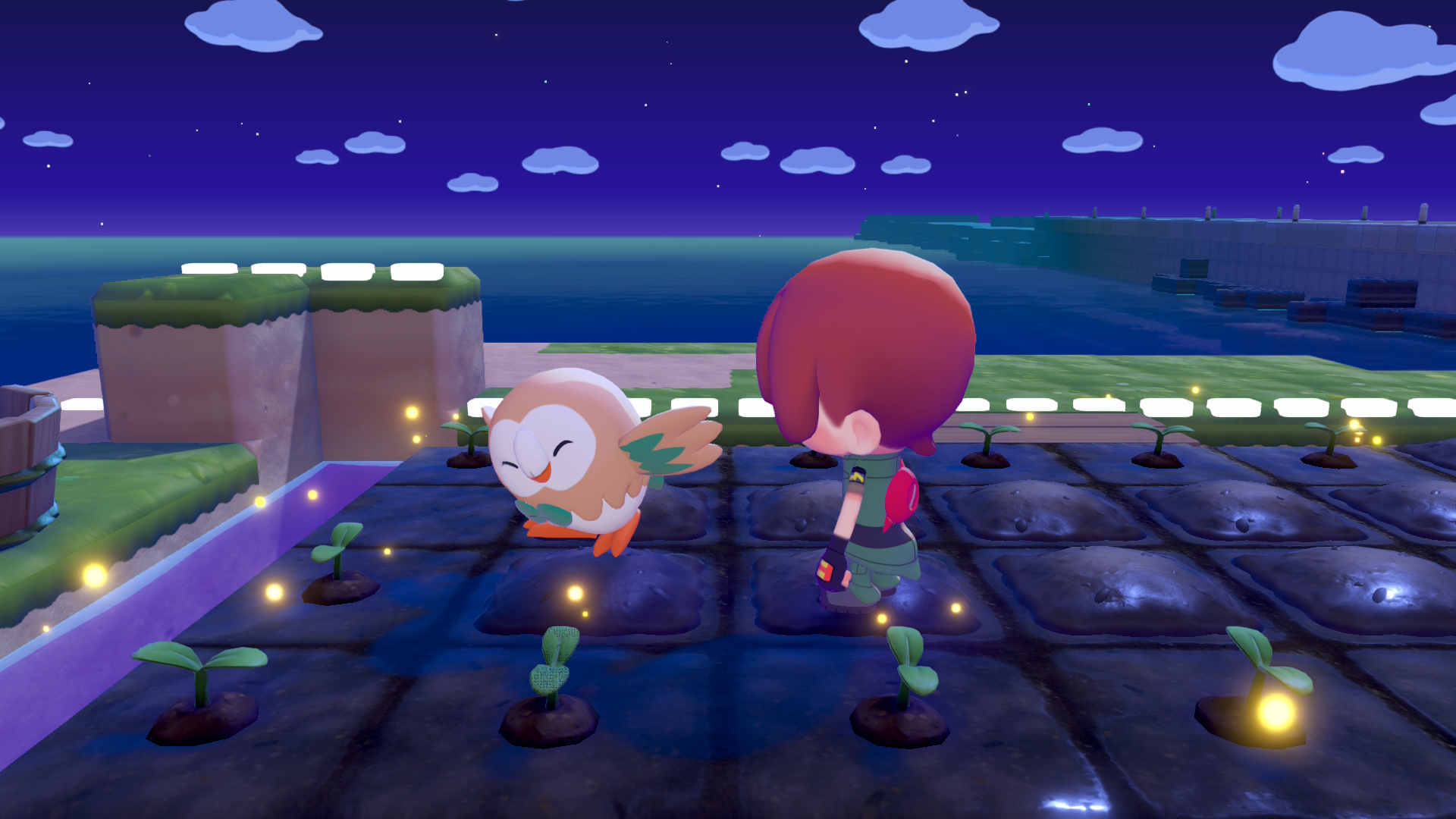 Les différentes régions que vous allez visiter sont en fait des lieux bien connus des fans de la franchise, mais arriverez-vous à les reconnaître ? Il faut dire qu’entre l’époque où on les découvrait sur Game Boy et aujourd’hui, les zones ont gagné en volume et s’étalent à présent sur plusieurs niveaux de hauteur. En tout cas, la sensation de nostalgie est bien présente, car un superbe travail a été effectué sur la partie sonore du jeu. Comme dans Animal Crossing, la musique évolue au fil de la journée, et vous pourrez reconnaître, si vous tendez bien l’oreille, des notes issues des musiques iconiques des villes et routes arpentées il y a plusieurs années.