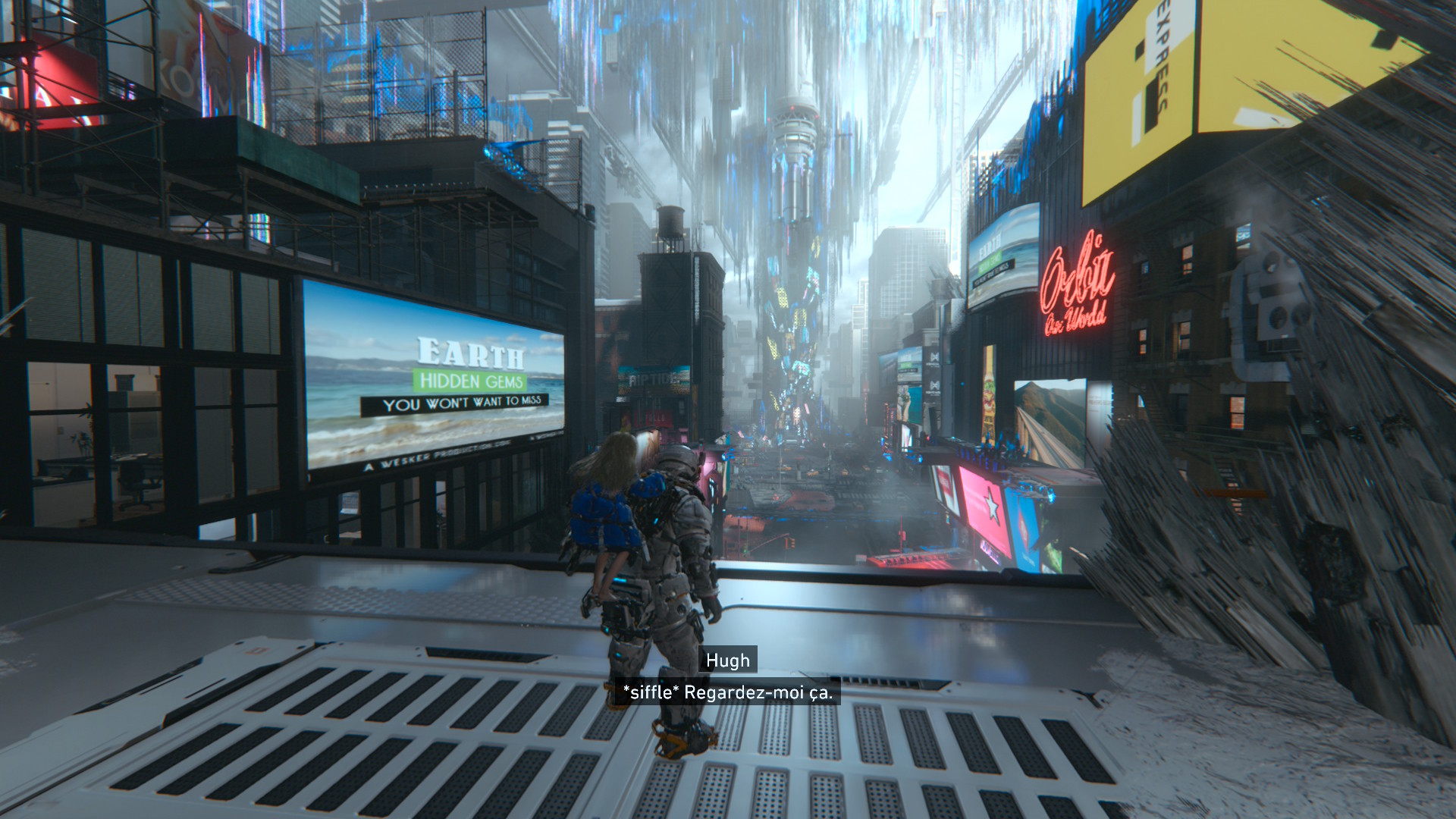 Côté scénario, on reste sur une structure très classique. Une IA détraquée, un matériau mystérieux capable de tout créer… que pourrait-il mal se passer ? L’aventure vous tiendra en haleine entre 12 et 15 heures en fonction de votre vitesse de progression et de votre envie de récupérer tous les collectibles et d’accomplir les simulations d’entraînement. En revanche, le vrai point fort narratif reste cette relation si particulière entre Hugh et Diana. Au fur et à mesure des découvertes au sein du Berceau, les deux protagonistes vont tisser des liens forts, Hugh racontant à Diana sa vie et ses voyages, et Diana, amnésique et ne connaissant que le Berceau, désireuse de découvrir les merveilles de la Terre et de pouvoir accompagner Hugh à son retour sur Terre. Bien que l’on ne s’y attende pas au premier abord, l’aventure est sujette à de nombreux rebondissements, que nous vous laissons le plaisir de découvrir par vous-même.