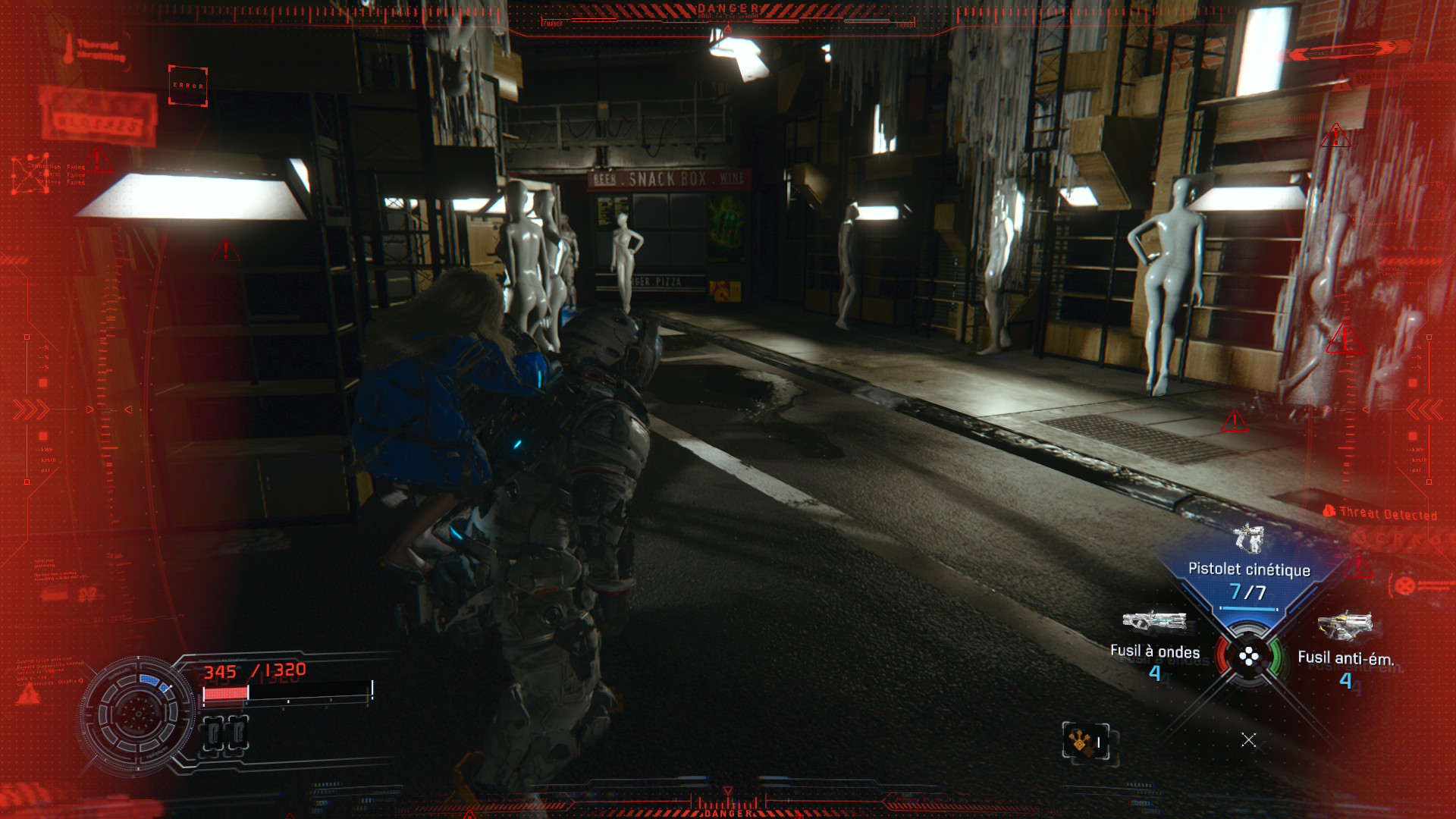 En conclusion de chaque zone, vous trouverez un boss qu’il vous faudra éliminer. Il y en aura pour tous les goûts : du gigantesque, du technique, du… tentaculaire (on sent d’ailleurs de temps à autre une vibe Resident Evil). Fait amusant, on aura également le droit à quelques légers sursauts avec des robots planqués dans des angles morts. Mention spéciale pour le Camoufleur qui peut se rendre invisible et qui vous attendra la plupart du temps dans des zones sombres où vous n’aurez que votre lampe de poche.