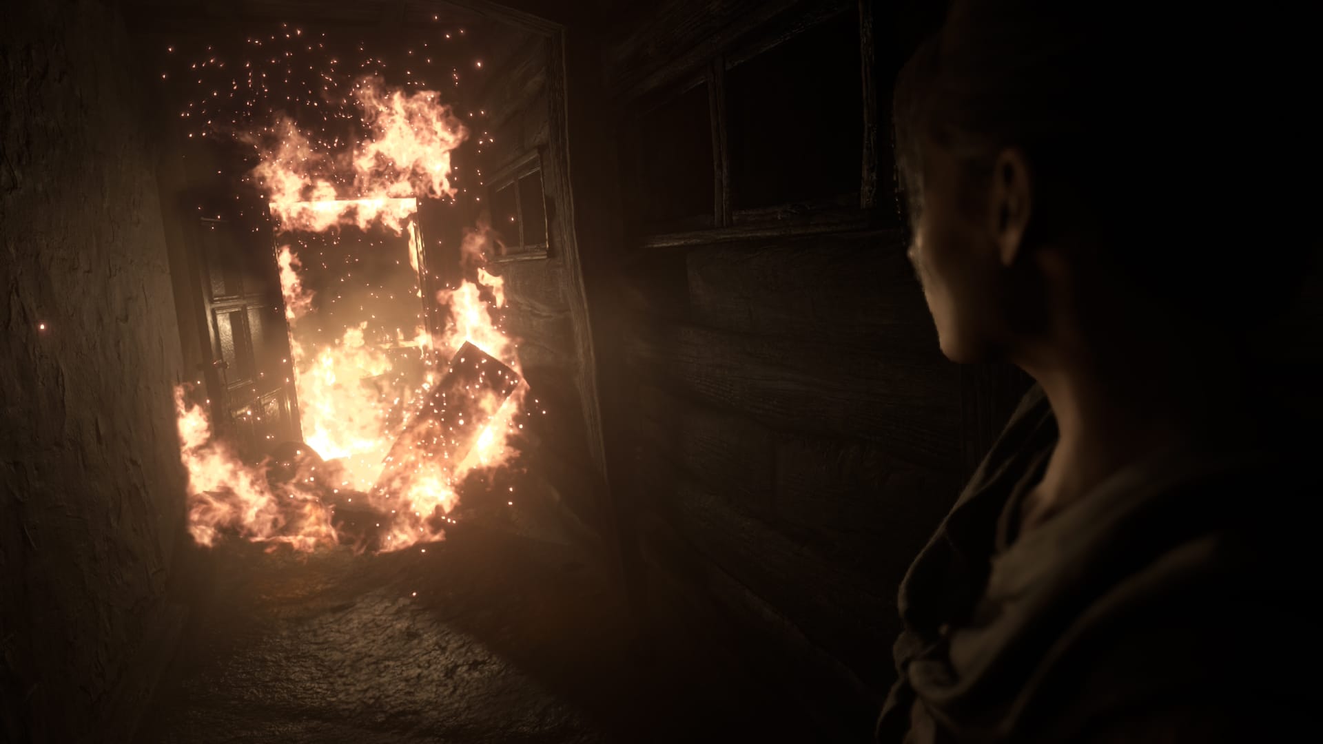 Sans trop en dévoiler sur le septième opus (qui se déroulait en Louisiane) qui précède directement Village, il suffit juste de savoir pour le moment que notre héros, Ethan Winters a retrouvé sa bien aimée Mia et qu’il ont eu une petite fille : Rose. Ainsi, nous découvrons cette petite famille installée dans sa maison alors que Mia raconte une histoire à Rose. Ethan trouve par ailleurs cette histoire quelque peu flippante pour un bébé. Mais Mia souhaitant s’intégrer, elle lui confie qu’il s’agit d'une histoire locale (Aux Carpates en Roumanie). Alors que tout va pour le mieux, Ethan couche Rose et descend rejoindre Mia. En pleine conversation, Mia se prend une balle puis se fait littéralement mitrailler, elle s’effondre. Ethan, horrifié et désemparé, ne comprend pas ce qu’il se passe. D'autant plus que Chris Redfield, à priori ami de la famille, surgit de l’ombre pour embarquer Ethan et la petite avec l’aide de son équipe d’intervention. Qu’est-il passé par la tête de Chris pour s’en prendre ainsi à sa famille ?