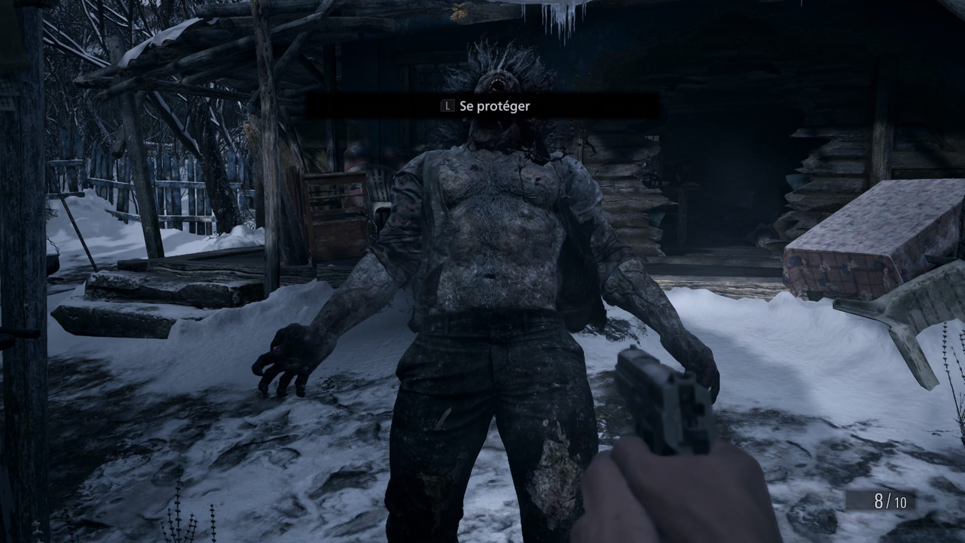 Tout comme c’est le cas depuis l’opus précédent, ce qui frappe les habitués de la série, c'est avant tout le fait d’avoir une vue à la première personne. L’immersion est garantie et cela permet de vraiment s’identifier à Ethan. D'ailleurs, l'étrangeté de Capcom, et qui fonctionne bien, c’est de ne jamais montrer le visage de notre héros. Les commandes sont plutôt simples à savoir viser et tirer. Il est aussi possible de sprinter mais aussi de se retourner grâce à une petite manipulation, ce qui peut s’avérer pratique quand il faut fuir rapidement. De plus, il est possible de se protéger en appuyant sur une touche afin de réduire les dégâts reçus et même riposter. Malgré tout, le gameplay est vraiment dynamique (surtout comparé à l’époque des caméra fixes) et même bien plus fluide que lors des opus de la génération précédente (à savoir les 5 et 6). En fait, on pourrait presque dire que Village s’inspire fortement de Resident Evil 4 (qui reste la référence chez de nombreux fans) tout en l’ayant modernisé, en somme une fusion entre le 4 et le 7.