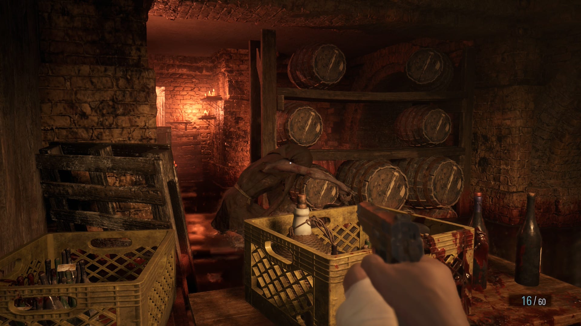 Toutefois, cela ne suffit pas. Ethan doit aussi se servir d’autres éléments mis à sa disposition. Par exemple, il peut y avoir près de vous des sacs de farine. Si vous leur tirez dessus, cela a pour effet de désorienter le monstre temporairement et vous laisse par la même occasion une bonne fenêtre de tir pour l’éliminer. De plus, les barils, que l’on a déjà vu dans des opus précédents sont aussi présents. Leur explosion donne un résultat garanti en termes de boucherie. Il ne faut pas non plus hésiter à se servir des adversaires quand c’est possible surtout quand ils sont “gros”. Leurs attaques étant très étendues, elles peuvent faire le ménage à votre place. Vous trouverez différents matériaux ci et là. Ils donnent l’occasion de confectionner vous même remèdes et autres munitions, et croyez-nous, vous en aurez besoin (surtout si vous êtes courageux et commencez dès le départ en mode difficile). Enfin, il est possible d’agrandir votre mallette de transport, n’hésitez pas, cela deviendra vite indispensable surtout pour porter un maximum d’armes différentes.