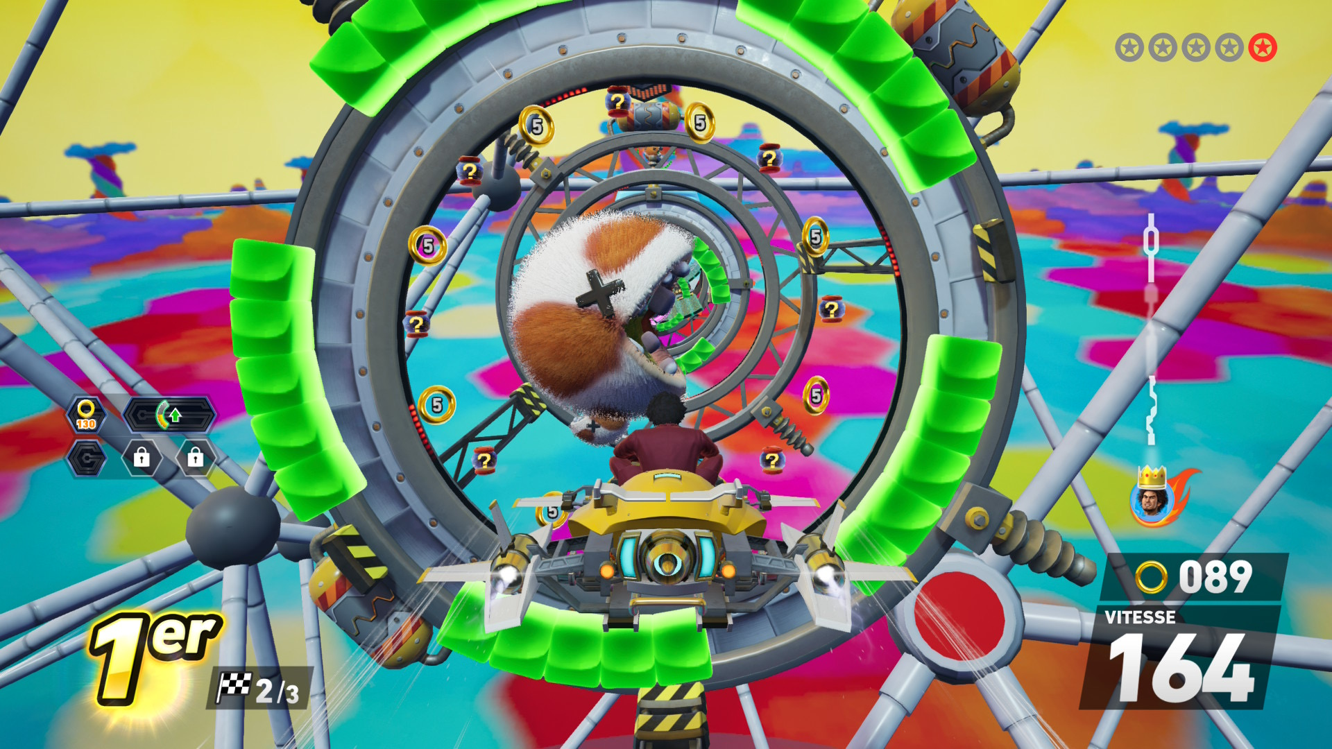 L'originalité des pistes passe par le fait qu'au second tour, sur toutes les pistes du jeu, un système de portails s'offre à vous, et plus précisément vous avez le choix entre 2 portails permettant de passer d’un monde à un autre en pleine course. Cette mécanique apporte du rythme et permet d'éviter toute monotonie, puisque les pistes ne seront que rarement les mêmes selon votre choix. Malgré l'accessibilité apparente du jeu, le jeu recèle une véritable profondeur de gameplay : ainsi les joueurs expérimentés pourront maîtriser les trajectoires parfaites, optimiser l’utilisation des boosts et exploiter les spécificités de chaque personnage. Tout cela favorise grandement la rejouabilité du titre, qui offre à notre goût bien plus de possibilités que Mario Kart World. L’équilibrage est globalement réussi, même si certains objets peuvent sembler un peu trop puissants dans certaines situations, il n'y a clairement pas d'abus comme un enchaînement de carapaces bleues qui peut sembler légitimement abusif parfois, chez le principal concurrent.