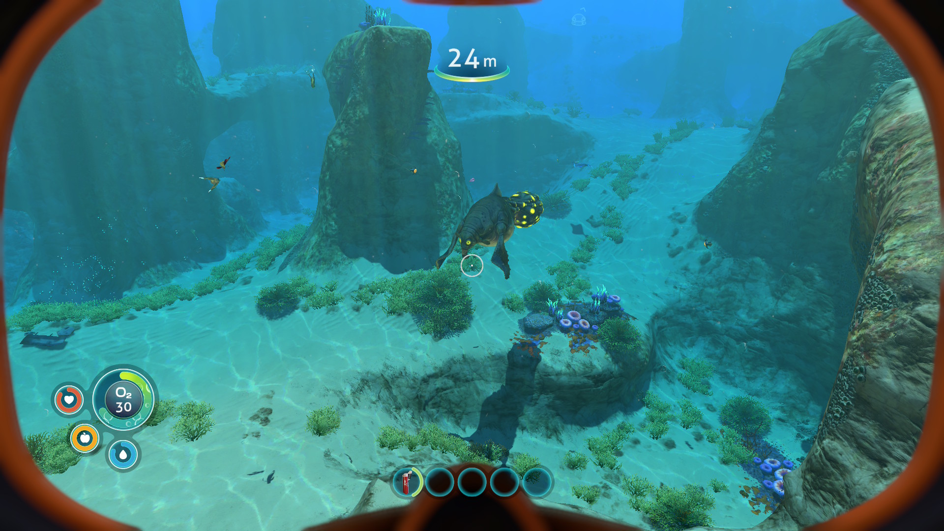 Dans Subnautica premier du nom, vous incarnez un survivant du vaisseau spatial Aurora qui s’écrase sur la planète 4546B. Seul rescapé apparent, vous devez explorer l’océan pour trouver des ressources, construire des équipements et comprendre ce qui s’est réellement passé. Au fil de l’aventure, vous découvrirez que la planète cache bien plus qu’une simple faune extraterrestre. Entre ruines mystérieuses, virus mortel et gigantesques créatures marines, l’histoire se dévoile progressivement à travers des journaux audio et l’exploration que vous ferez dans votre zone. La narration est subtile et repose largement sur la curiosité du joueur, ce qui renforce l’immersion et le sentiment d’isolement.
