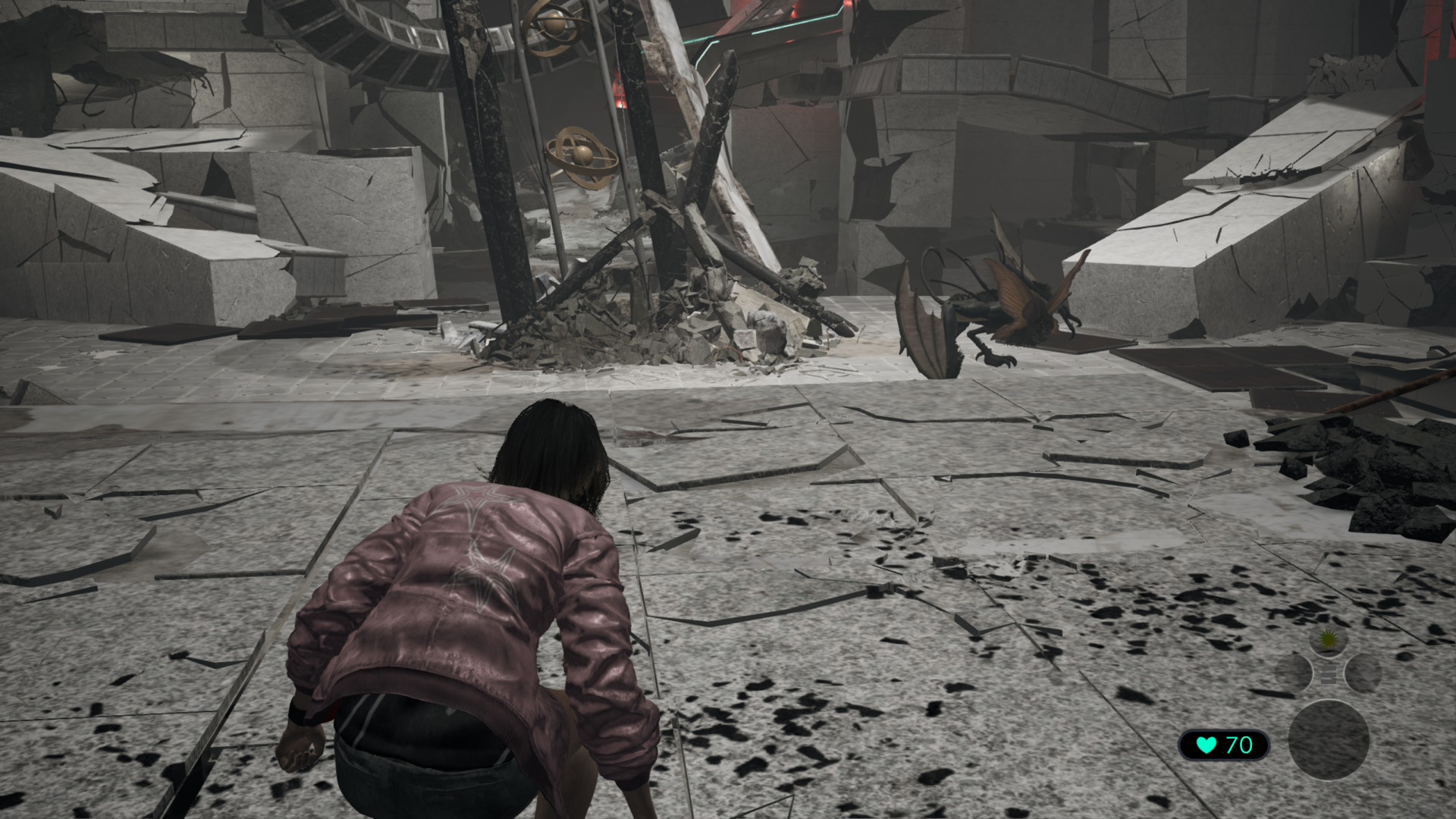 Tokyo Scramble nous met dans la peau de Anne, une jeune femme musicienne se baladant librement dans le métro de Tokyo pour rejoindre un groupe d’amis. Il ne faut pas longtemps que pour la catastrophe intervienne, un énorme tremblement qui plonge notre protagoniste dans les tréfonds de Tokyo. Semblant être la seule rescapée, elle va devoir trouver un chemin dans les décombres pour tenter de regagner la surface. Hélas, trois fois hélas, une mauvaise surprise l’attend au bout de quelques mètres, des créatures aux allures de dinosaures semblent se balader dans les décombres. Appelés Zinos par notre protagoniste, vous allez devoir composer avec votre environnement et vos frêles capacités pour leur échapper.
