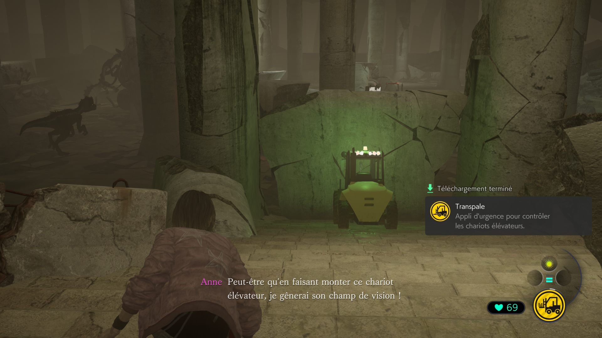 Côté son justement, le soin apporté à l’ambiance sonore est là-aussi très travaillé. Les bruits des zinos, les grincements et autres bruits métalliques renforcent le côté oppressant de certaines situations. Personnellement j’ai un peu plus de mal avec la respiration de l’héroïne que je trouve un peu trop bruyante même lors des déplacements normaux, mais aussi une bizarrerie assumée par les développeurs, où l’on entend Anne chantonner à certains moment. Drôle de sens des priorités lorsque l’on cherche à échapper à des dinosaures qui ne rêvent que de vous bouffer les miches.