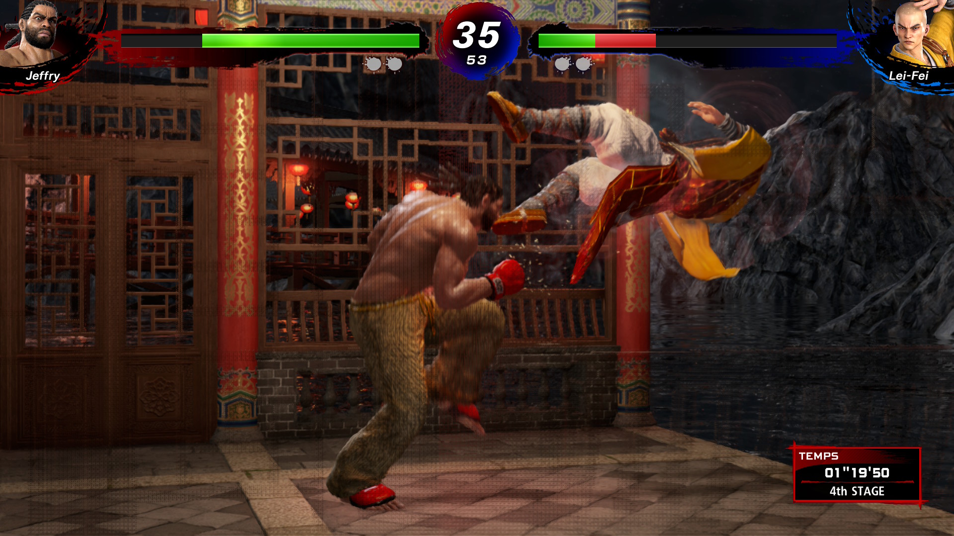 En contrepartie de cette exigence, Virtua Fighter 5 fait le choix d’une grande simplicité : aucune jauge de super, aucun système de stun envahissant. Le jeu repose entièrement sur la maîtrise du joueur, sa lecture de l’adversaire et sa gestion de l’espace, qu’il s’agisse de coincer son opposant au bord du ring ou de gérer une pression sur les flancs.