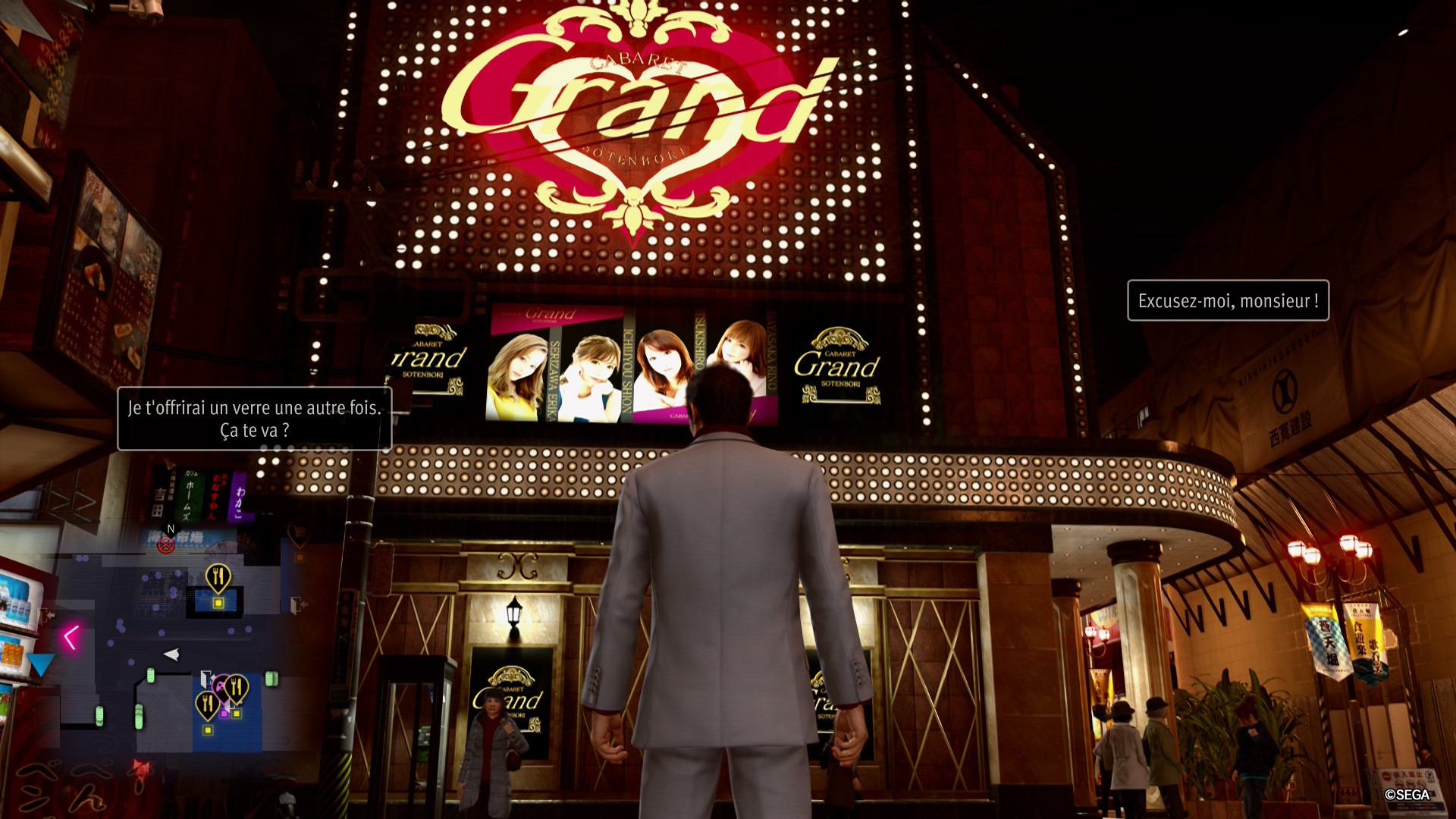 D'ailleurs, parlons de votre avancée. Cette fois, votre expérience est divisée en plusieurs catégories, et vous pourrez débloquer de nouveaux traits ou améliorations en dépensant de l'expérience de chaque catégorie, ou un mélange de plusieurs. Ça peut paraître compliqué mais ça ne l'est pas, grâce à un menu de progression simple. Chaque activité vous fera gagner un certain type d'expérience, que ce soit la bagarre, les mini-jeux, les missions, les exploits, etc... De prime abord, des clopinettes, mais vous aurez toujours tant à faire qu'elles vont vite s'additionner. Et certaines capacités sont toujours bloquées derrière une quête, un objet ou une activité, donc vous aurez tout intérêt à explorer les villes de Kamurocho et Sotenbori à fond !
