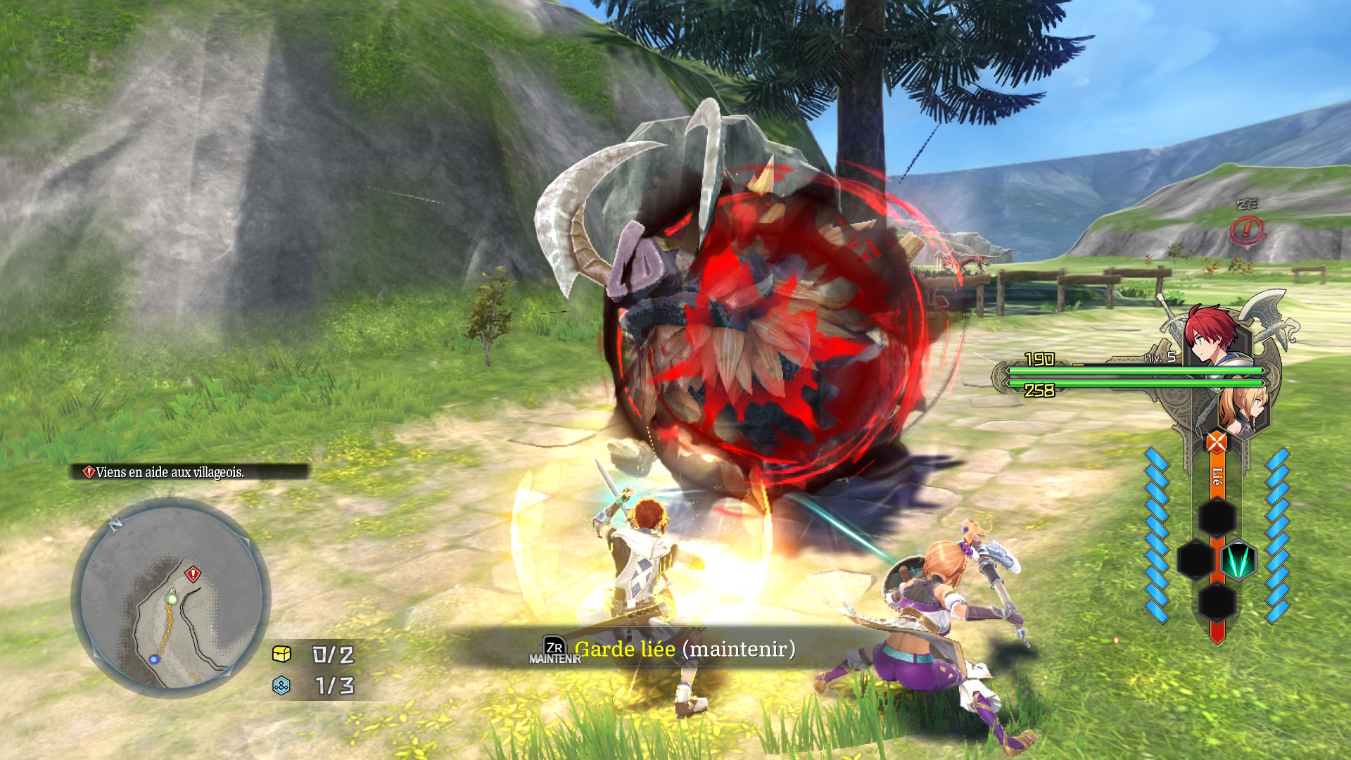 Contrairement aux précédents épisodes, qui vous faisaient combattre aux côtés de plusieurs alliés à l’intelligence artificielle discutable, la coopération est ici au cœur du système de combat. Adol étant lié à Karja par un lien de mana, cette contrainte scénaristique devient une véritable force ludique.