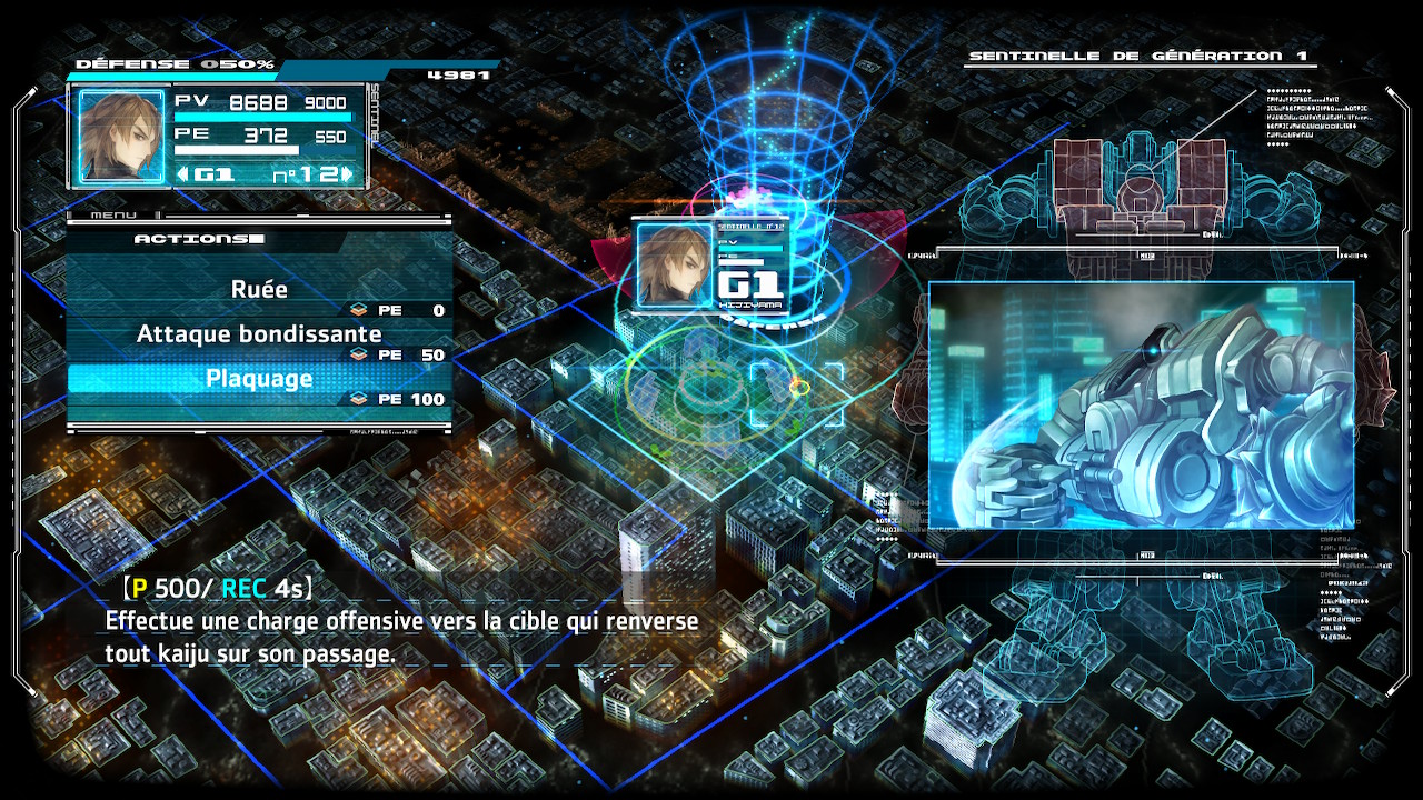 Le prologue du jeu nous propose de switcher entre le scénario de quelques personnages principaux, et nos premiers affrontements faisant office de tutoriels. Si les phases d’histoires sont extrêmement calmes, les combats quant à eux se révèlent plus dynamiques. Prenant la forme d’un Tactical-RPG en semi temps-réel, nous nous retrouvons donc à affronter les Deimos en étant aux commandes des Sentinelles, ces robots géants que contrôlent les protagonistes.