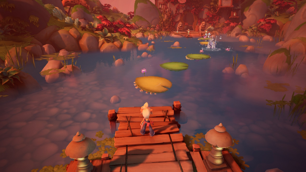 Le premier masque est ainsi Lani-Loli, un masque assez froussard mais qui a la capacité de changer les phases des éléments. Certains sont dans un état fantomatique et intangible mais en changeant leur phase, ils deviennent solides, ce qui permet d’avancer ou de détruire des obstacles. Mais bien sûr, toute la difficulté réside dans le fait qu’en solidifiant certains éléments, d’autres passent dans un état fantomatique. À certains moments, il faut bien calculer ses sauts pour que le changement ait lieu pendant qu’on est dans les airs. Le deuxième masque, ‘Akano, peut nous faire faire des tourbillons quantiques afin de de virevolter en continu, ce qui nous aide à planer pour franchir de grands précipices, à renvoyer des tirs et à vaincre les ennemis utilisant de la magie verte.