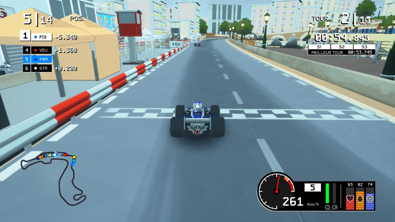 En revanche, petit point plaisant, elle peut commettre des fautes et donc subir elle aussi des sorties de route. Côté graphisme, c’est assez mitigé. Si la direction artistique choisie est plaisante à regarder, une sorte de modélisation shibi des véhicules, il y a d’autres points bien moins plaisants. En effet, le titre n’est pas très fluide. Il est stable mais semble être capé à un peu en dessous des 30 fps. Si en soit ce n’est pas gênant outre mesure, en revanche, le clipping très présent n’est pas très agréable à l'œil surtout que la Switch peut faire mieux avec un jeu n’ayant pas une densité d’objets extraordinaires. Enfin côté sonore, le tout passe plutôt bien avec des effets plutôt bien rendu et une musique qui colle plutôt bien au style.