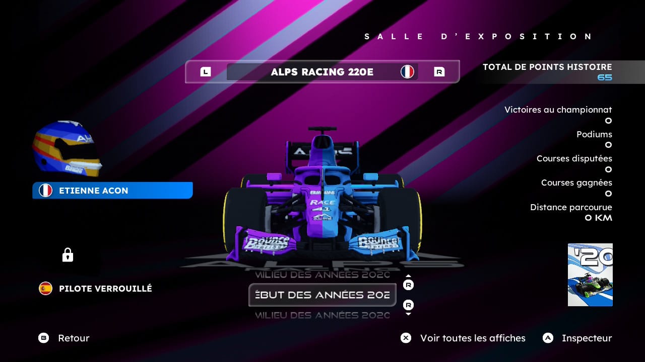 Rappelons dès à présent que Formula Legends ne dispose pas de la licence officielle FIA. Ainsi, c’est un vent de nostalgie qui nous prend dès lors que l’on parcourt les menus et que l’on découvre les noms des pilotes. En effet, comme dans les années 90 (pour ne citer qu’elles), le titre utilise des noms d’emprunt qui peuvent parfois prêter à sourire comme un certain Alan Proust. Si vous connaissez les pilotes de chaque époque, vous les reconnaîtrez sans mal. Il en est de même pour les écuries, aux couleurs sur la carrosserie de chaque bolide, vous n’aurez pas de mal à reconnaître Renault, Alpine ou encore Ferrari. Enfin, les circuits sont quant à eux fortement inspirés de circuits existants eux aussi (tel que Monaco).