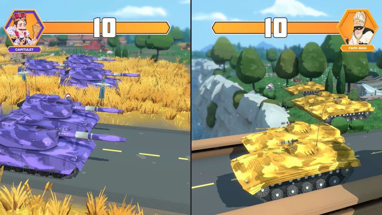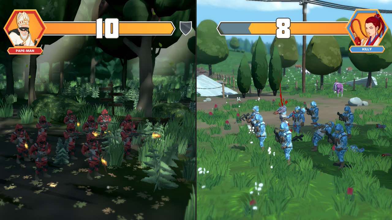 Qui a décrété que la guerre ne pouvait pas se faire dans une ambiance marrante et chaleureuse ? Les personnages déjantés que l'on incarne dans le jeu vous prouveront rapidement qu'en la matière, tout est possible, chacun d'entre eux possédant sa propre personnalité ainsi que ses propres répliques cinglantes qui surprennent par leur humour et leur légèreté. Il faut dire que le scénario de base ne peut que nous proposer ce type de protagonistes, étant donné qu'une guerre mondiale vient tout juste d'éclater suite à la mort du président du monde, rien que ça ! Bien sûr, ce prétexte léger entraîne immédiatement chaque faction dans de nouvelles hostilités dans lesquelles elles souhaitent à tout prix occuper le fauteuil fraîchement vide de président du monde.