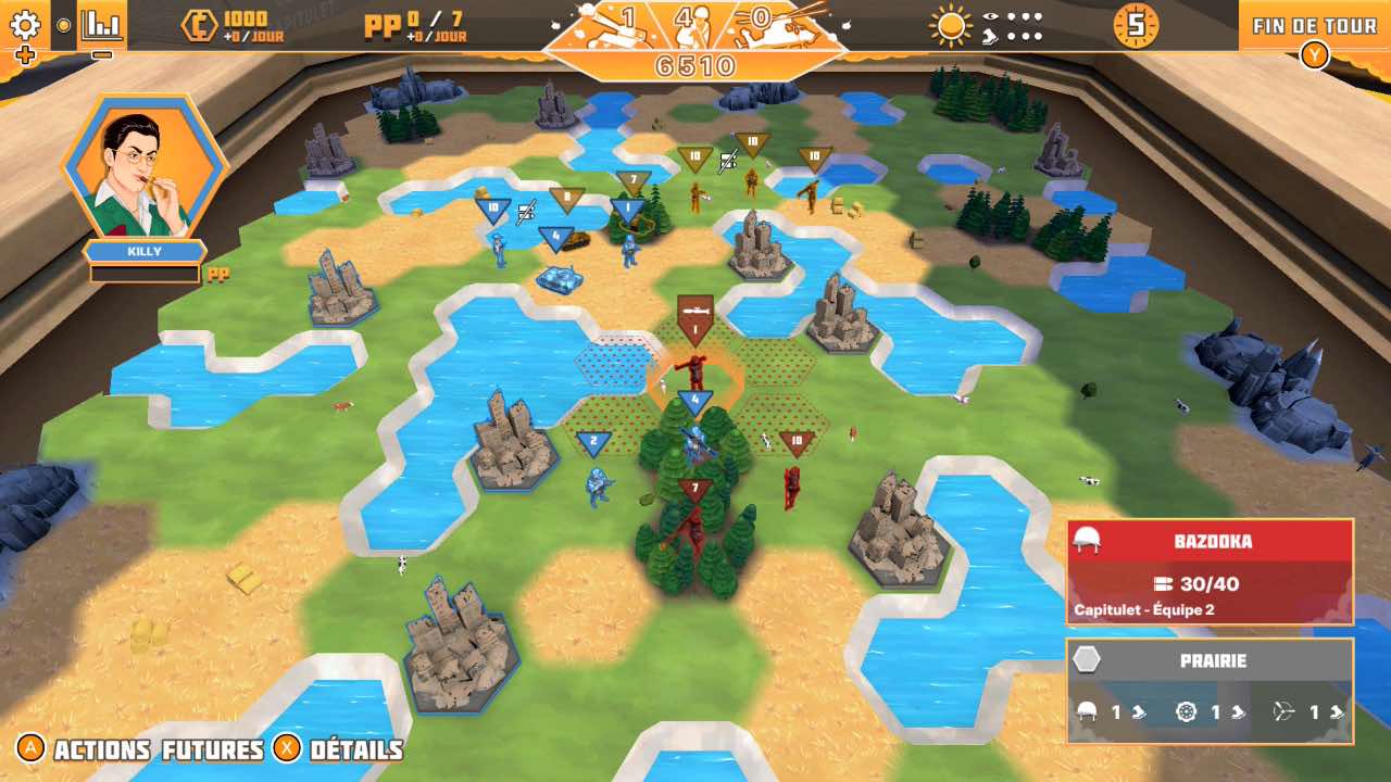 Les 40 missions du mode Histoire qui vous attendent demanderont une certaine dose de stratégie de votre part, car bourriner en construisant un maximum d'unités ne vous assurera pas toujours la victoire. Heureusement, un tuto est disponible d'entrée pour vous familiariser avec l'ensemble des commandes, ce qui est clairement bienvenue puisque vous devrez tout de même absorber les subtilités du gameplay. Ainsi, disposer vos troupes dans les montagnes vous assurent un gain de défense considérable, alors que si vous opposez frontalement vos troupes à une unité de tanks, c'est la débandade assurée. Le choix du terrain est donc important, tout comme votre capacité à envahir les villes qui vous permettront de toucher le pactole à chaque tour de jeu.