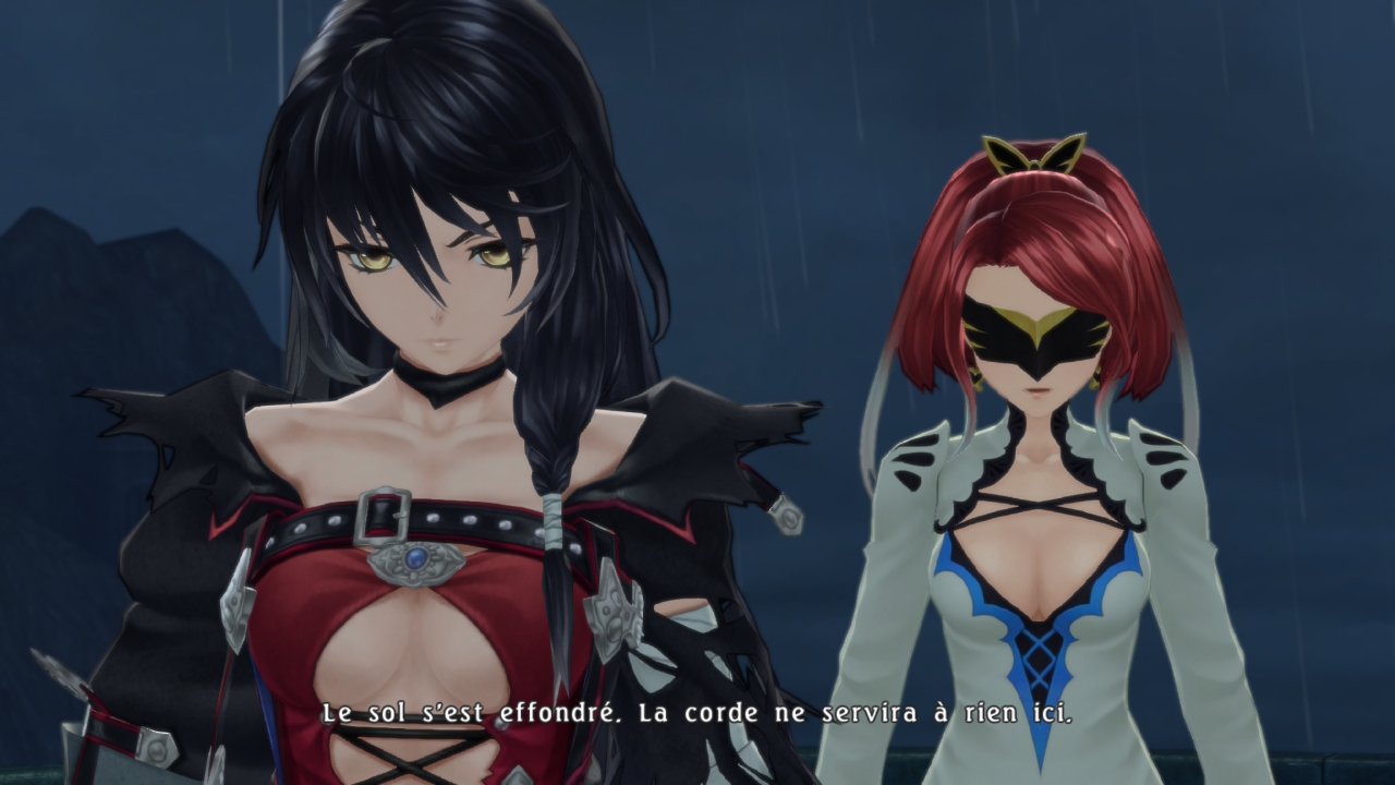 Vous l’aurez compris, Tales of Berseria nous propose une histoire loin des classiques où le pitch de base est de jouer ce qui serait les antagonistes dans la plupart des jeux, et il n’est pas timide là dessus. Velvet est une rageuse patentée se mettant constamment en danger, et son équipe est constituée de tarés ayant tout perdu ou presque, et prêts à la suivre jusqu’en enfer pour peu qu’ils puissent emporter leur pire ennemi avec eux. Toutefois, la part d’humanité qui reste dans ces compagnons les rend attachants, et on peut compatir à leurs malheurs, et même les comprendre parfois. En plus, le nouveau régime a un visage caché peu reluisant, autoritaire et limitant, entre loi martiale et endoctrinement religieux. Il n’y a donc pas de blanc ou de noir, mais que du gris, le tout est très bien exécuté, et nous plonge dans l’univers du jeu.