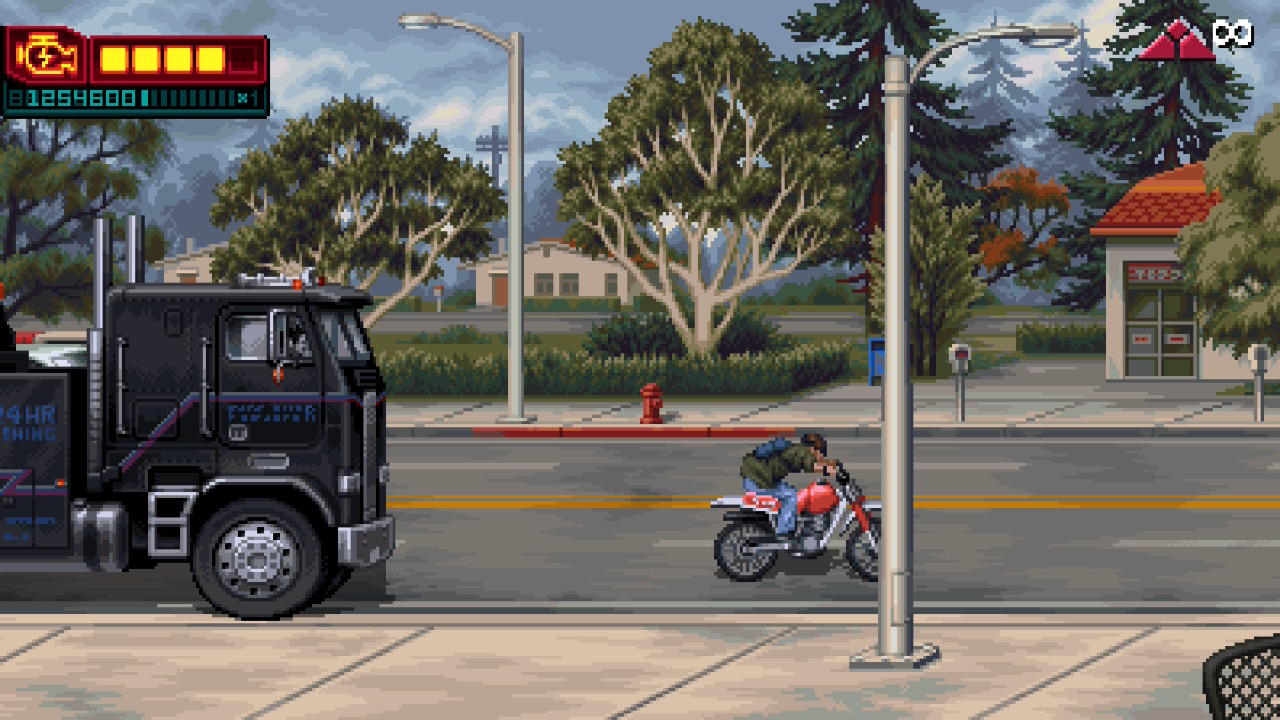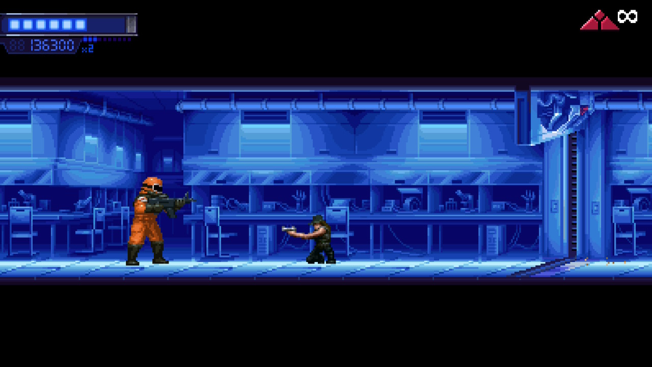 Pour résumer, les ennemis peuvent vous éliminer rapidement, vous devez être attentif à chaque instant, les niveaux contiennent leur lot de pièges dangereux et la moindre petite erreur peut vous coûter cher. Et tout ça sans prendre en compte les combats de boss, qui peuvent vraiment être horribles, notamment dans les difficultés plus élevées. On assiste donc à un véritable die & retry à l'ancienne, qui ne plaira sans doute pas à tout le monde. Cela pourrait refroidir les néophytes en la matière ou les plus jeunes d'entre nous… Ce qui serait dommage car chaque niveau franchit apporte un satisfecit légitime. Ne comptez pas sur le jeu d'ailleurs pour avoir beaucoup d'aide, ici on se débrouille avec ce que l'on a et c'est tout, pour la partie tuto on repassera. On appréciera en tout cas la variété du gameplay en fonction du personnage que l'on incarne, Sara ne se maniant pas exactement comme son fils John. Enfin, les amateurs de challenges encore plus difficiles ne compteront pas leurs heures pour tenter d'obtenir le rang S pour chacune des missions du jeu. Un Boss Rush est également de la partie, pour les plus téméraires.