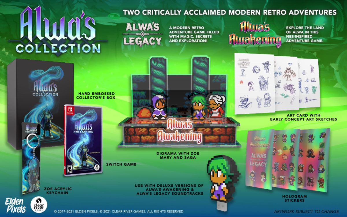 Après un accueil positif des joueurs des deux titres Alwa's Awakening et Alwa's Legacy sur l'eShop de la Nintendo Switch et supports concurrents, l'heure est venue pour la licence metroidvania de Elden Pixels de passer à la vitesse supérieure. En effet, en accord avec Clear River, une édition physique verra officiellement le jour sur Nintendo Switch et sera exclusivement vendue par Limited Run Games au prix de 69,99$.