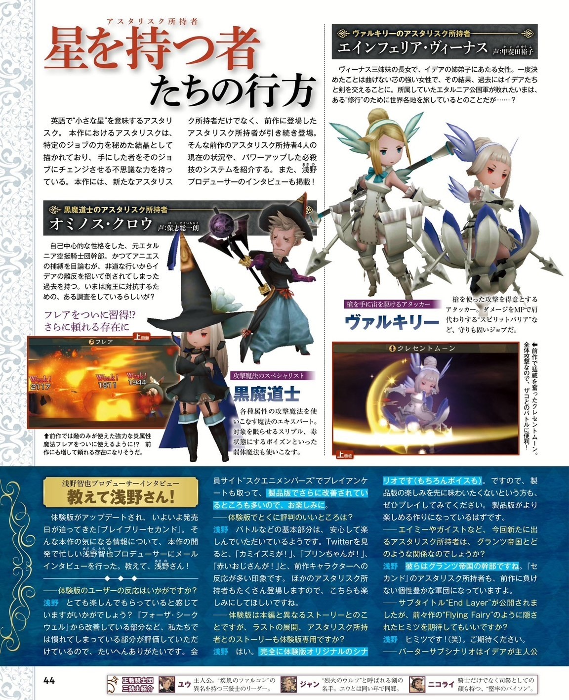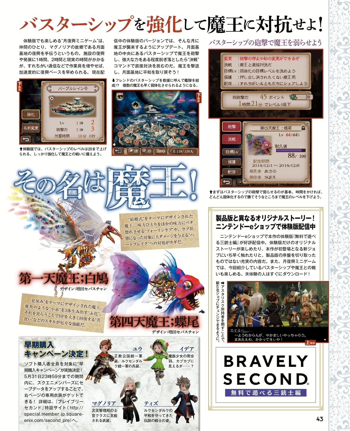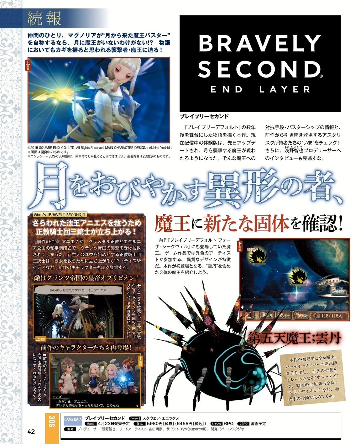 Aujourd'hui, dans le magazine Famitsu, de nouveaux scans nous ont été révélés concernant Bravely Second : End Layer. Ce jeu est le second volume qui sort sur la Nintendo 3DS. Nous vous rappelons qu'il sera disponible sur l'eShop à partir du 23 avril 2015 au Japon. Aucune date n'a encore été annoncée pour une sortie européenne et américaine.