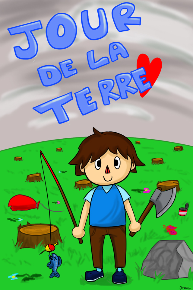 Adrien a dessiné sur Animal Crossing : New Horizons. Le 22 Avril dernier, c'était le jour de la terre, qui est censé être un jour écologique. Pas sur que le joueur l'ait respecté.