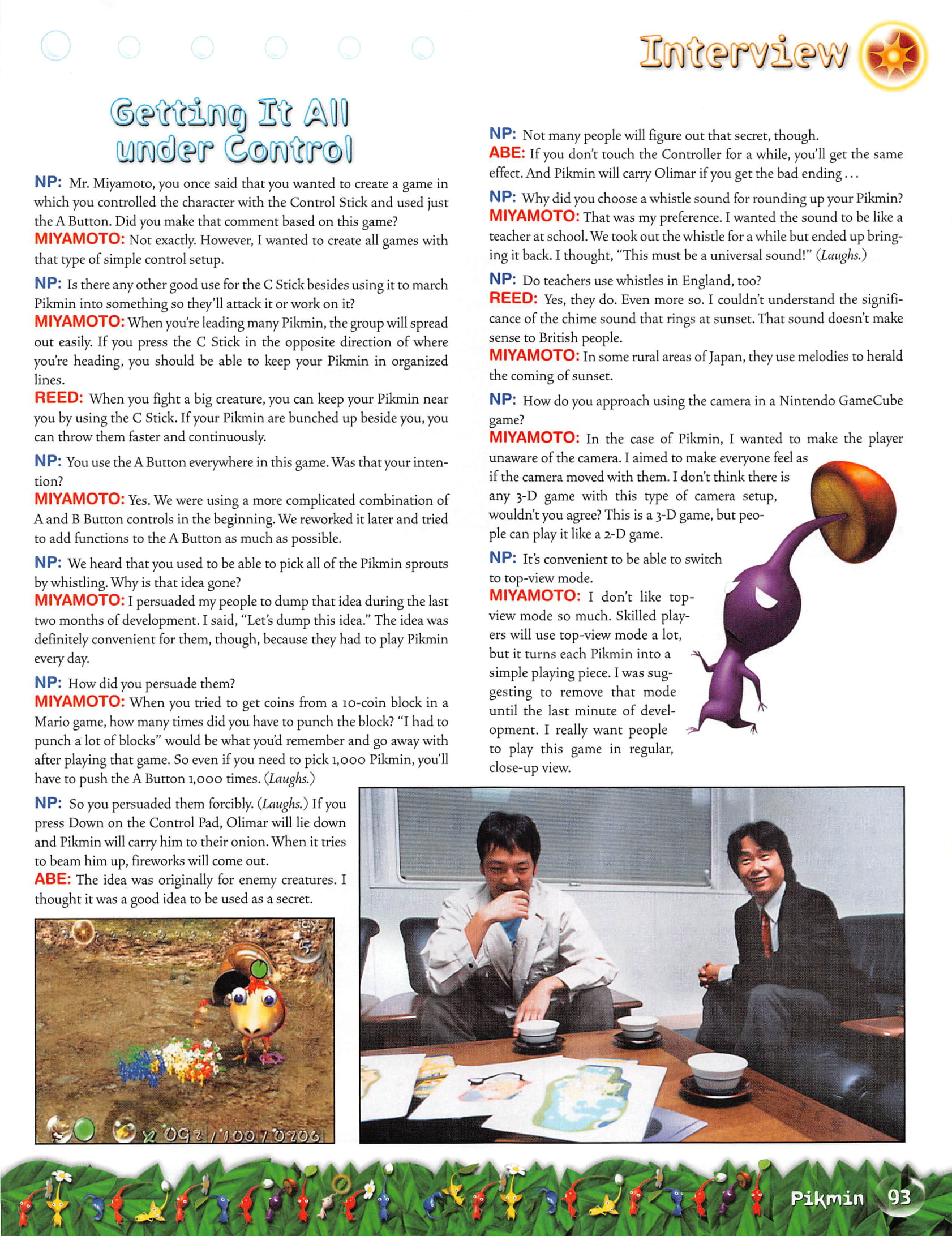 (Source : Interview de Shigeru Miyamoto dans The Official Nintendo Player's Guide : Pikmin par Nintendo Power Magazine).