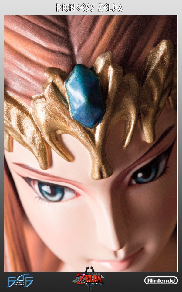 Pour cette occasion, la Princesse sera vêtue de sa robe de Twilight Princess. Reproduite à l'échelle 1/4, elle mesure 43,18 centimètres, est fabriquée en polystone et est entièrement peinte à la main. Pour se rapprocher le plus possible du personnage, First 4 Figures a bien sûr pu s'inspirer d'extraits du jeu.