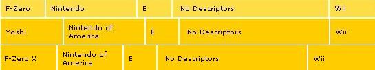 En effet, d'après l'organisme de classification américain, l'ESRB, F-Zero et Yoshi, seraient en développement sur Wii. Il ne nous manque plus qu'une confirmation de la part de Big N. On pourra donc participer à des courses endiablées, ou même incarner la célèbre monture de Mario, Wait & See...