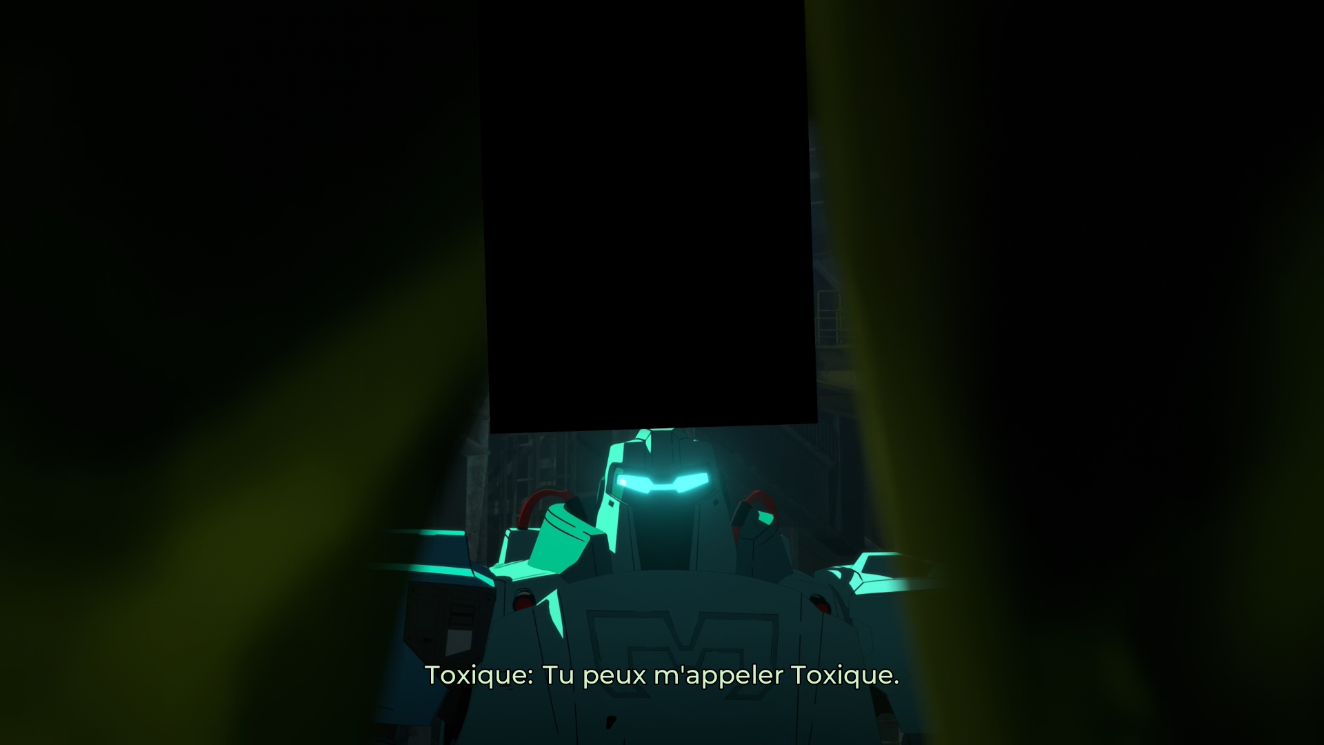 En tout cas, pour en avoir récemment discuté avec des membres de l'équipe, je ne suis pas particulièrement fan des univers de Super Héros, je me suis laissé convaincre de prendre la version Switch 2 de Dispatch avant d'apprendre cette histoire de censure, et le moins que l'on puisse dire c'est que j'ai agréablement été surpris par mon début d'aventure, la qualité des doublages, et ces magnifiques rectangles noirs qui virevoltaient à l'écran lors du combat contre Toxique. Une chose est sûre, si l'on devait résumer cette histoire autour de la censure de Dispatch en une image, il y en a une bien adéquate.