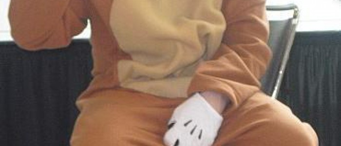 Avant de commencer, voici en avant première une image des coulisses de l’E3. Shigeru Miyamoto est prêt à voler sur scène tel un David Copperfield rondouillet dans son costume Tanuki.