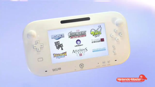 Ubisoft nous avait prévenu, il faudra compter sur lui pour le lancement de la Nintendo Wii U. Nous savions que plusieurs projets étaient en préparation mais cette conférence nous a enfin apporté quelque chose de concret, un chiffre : huit titres Ubisoft seront disponibles au lancement de la nouvelle machine de Nintendo ! Sports Connection, Avengers : Battle for Earth, Rabbids Land, Just Dance 4, ZombiU, Rayman Legends, Assassin's Creed III, Your Shape 2013. Même si pour certains nous n'en avons vu que de brèves images, nous pouvons d'ores et déjà dire qu'il y en aura pour tous les gouts.