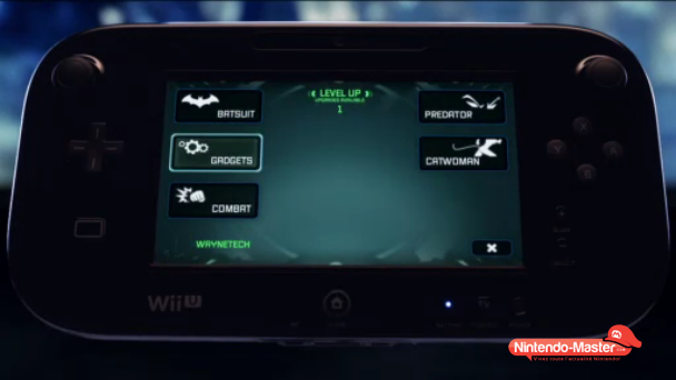 Quelques précisions sur cette version Wii U, développée par Warner Bros Games Montreal, ont été apportées. On y apprend qu'un nouveau costume pour Batman et Catwoman est disponible et qu'il permettra d'accéder à un nouveau power-up en nous permettant d'engranger de l'énergie cinétique durant les combats. Une fois activé, votre personnage entrera en mode Battle Armored Tech pour provoquer plus de dégats sur vos ennemis et les repérer plus facilement. Le GamePad fera place à un tout nouveau Batcomputer où vous pourrez sélectionner vos gadgets, preuves, améliorer et choisir vos armes, programmer vos bombes et bien d'autres choses, sans jamais quitter le jeu. Tous les gadgets ont aussi été améliorés pour utiliser les capacités du GamePad. Vous pourrez par exemple utiliser un nouveau mode sonar qui permet à Batman de rapidement analyser son entourage pour choisir sa tactique, customiser et vous armer de votre gadget préféré mais aussi accéder à la carte en temps réel de Gotham. La manette vous permettra aussi une plus grande précision avec le Batarang et de scanner les environnements pour chercher des indices.
