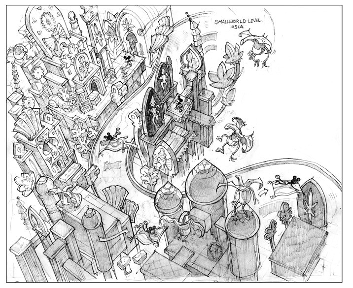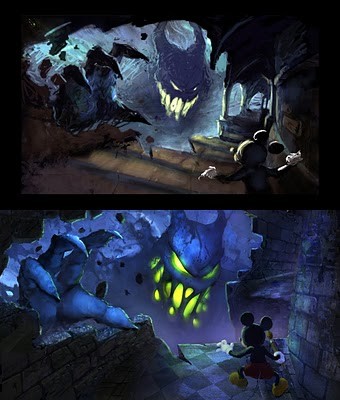Pour ce qui est des artworks encore jamais vus auparavant, nous découvrons que le titre était bien plus sombre qu'il ne l'est actuellement. Les Petites Tâches, qui sont considérés comme les bouffons du titre, étaient dans le passé un poil plus effrayants et on voit qu'ils pouvaient voler. Le Manoir Hanté était bien plus grand, la plupart des décors étaient plus sombres et plus impressionnants, les ennemis étaient plus dérangeants, Mickey était encore plus différent selon les choix du joueur... On se rend compte que la production d'Epic Mickey ne s'est pas déroulée exactement comme l'auraient souhaité les concepteurs du jeu. La faute revient-elle aux capacités de la Wii ou bien aux souhaits de Disney ? Dans tous les cas, Epic Mickey reste tout de même un bon voyage dans la vision sombre de l'univers Disney et on espère que si deuxième opus il y a, il se révélera plus ambitieux que son ancêtre.