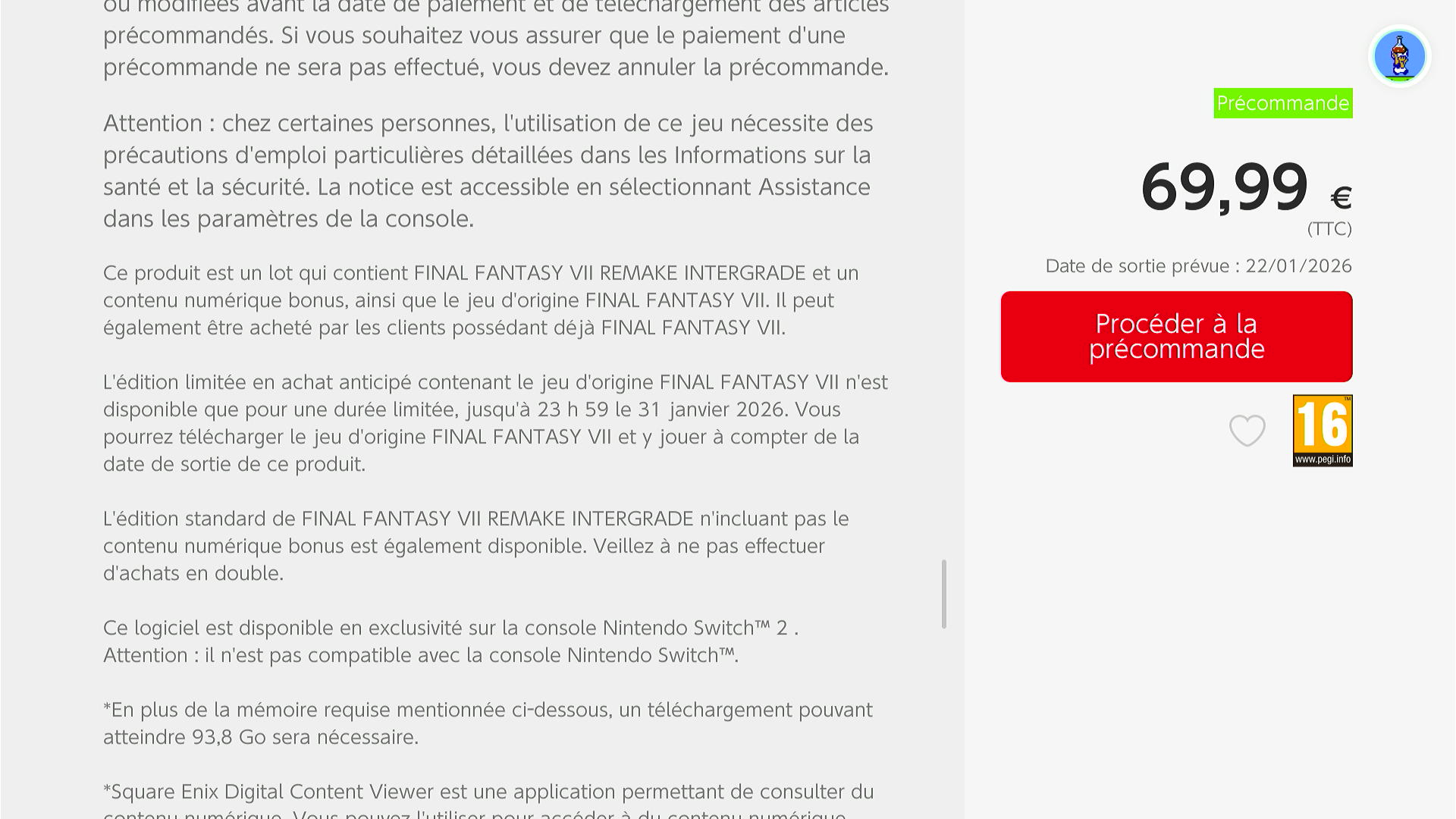 Autant dire qu'avec Final Fantasy VII Remake Intergrade (que Digital Foundry considère déjà comme "le plus beau jeu de la Switch 2") on passe un cap... Alors, serez-vous prêt à le franchir ? N'hésitez pas à nous le dire en commentaires.