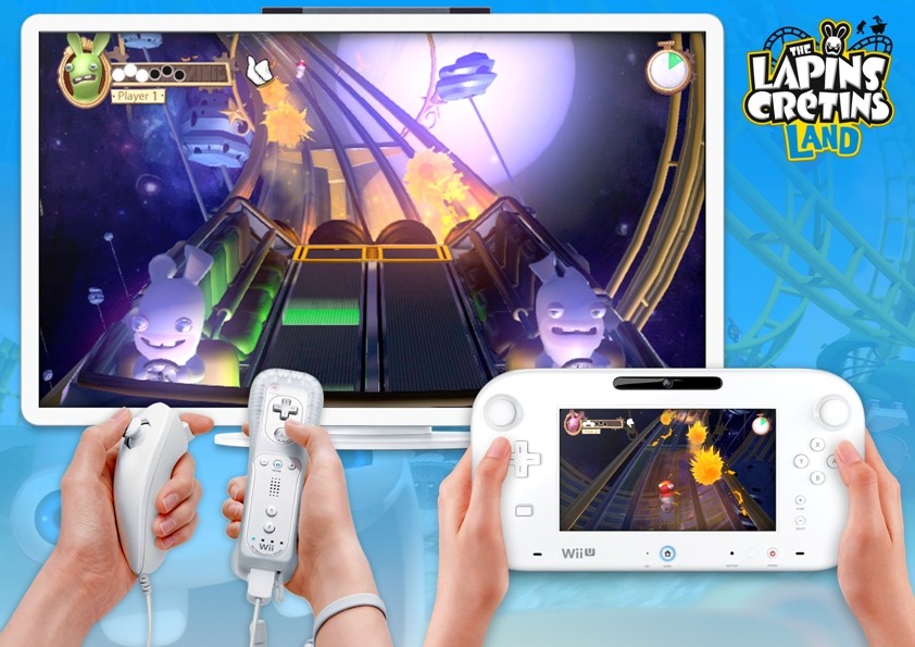 Ubisoft ne s'arrête pas en si bon chemin et propose maintenant de nouvelles images de The Lapins Crétins Land titre qui arrivera exclusivement sur Nintendo Wii U. Vous en aviez marre des Lapins ? Vous allez en bouffer encore et encore et cette-fois, inutile de vous dire que le parc d'attractions dans lequelle ils ont atteri risque fort de faire lui-même des loopings. Bref, vous retrouverez dans cet opus une multitude de mini-jeux déjantés où le Wii U GamePad et le gameplay asymétrique seront au rendez-vous. Divers contrôles s'offriront donc aux joueurs, que ce soit avec le tactile ou encore les fameuses Wiimote indémodables.