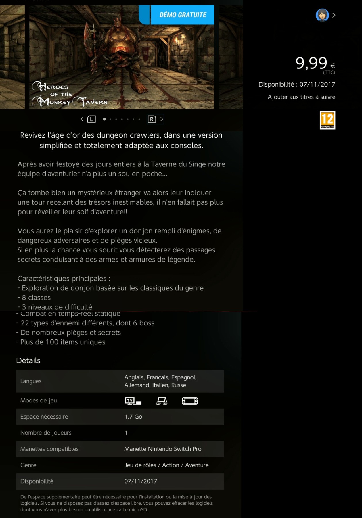 Heroes of The Monkey Tavern est un "Dungeon Crawler" qui se veut un hommage à l'âge d'or du genre sur PC et notamment à des classiques comme "Eye of The Beholder" (rien que le titre est magique) ou encore Dungeon Master. Le joueur se retrouve donc avec une vue à la première personne à déambuler dans un donjon rempli de pièges, d'ennemis féroces et de surprises...Pour voir à quoi cela ressemble, vous pouvez jeter un œil sur les images et le trailer du jeu ci-dessous. Si on en croit l'eShop de la Switch, une démo de devrait être disponible incessamment sous peu<...